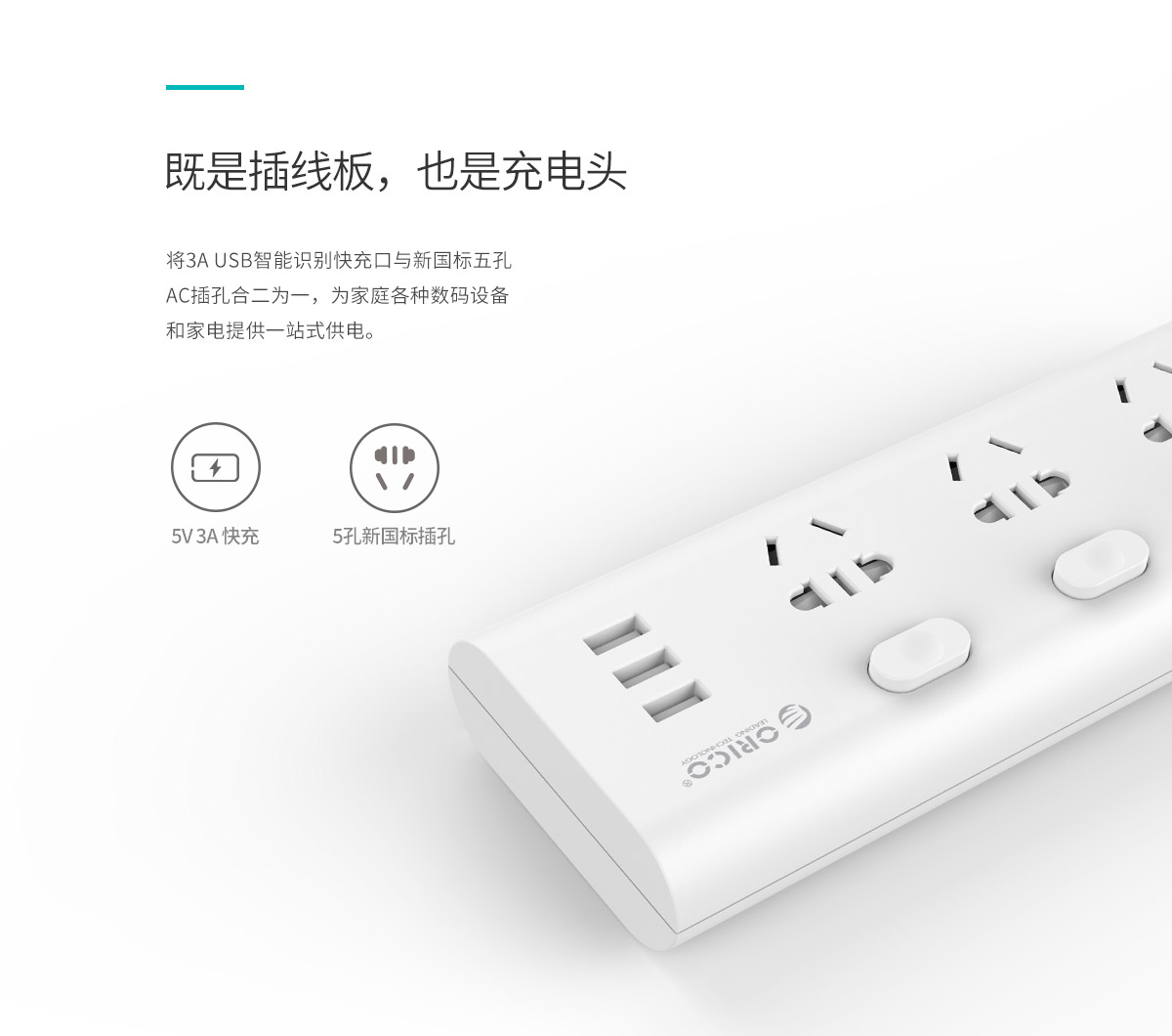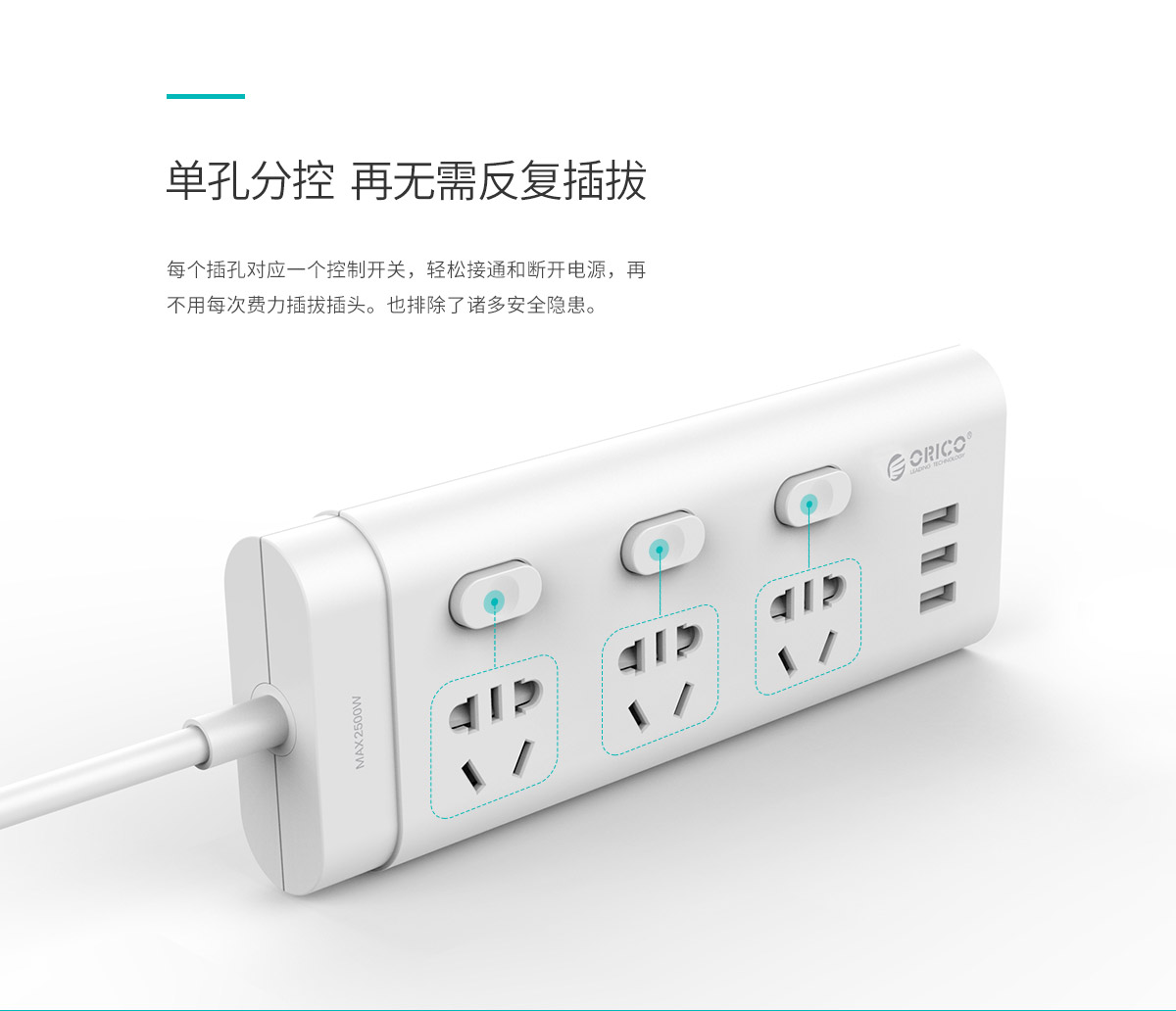 新國標便攜桌面式排插,分控開關,2500W大功率