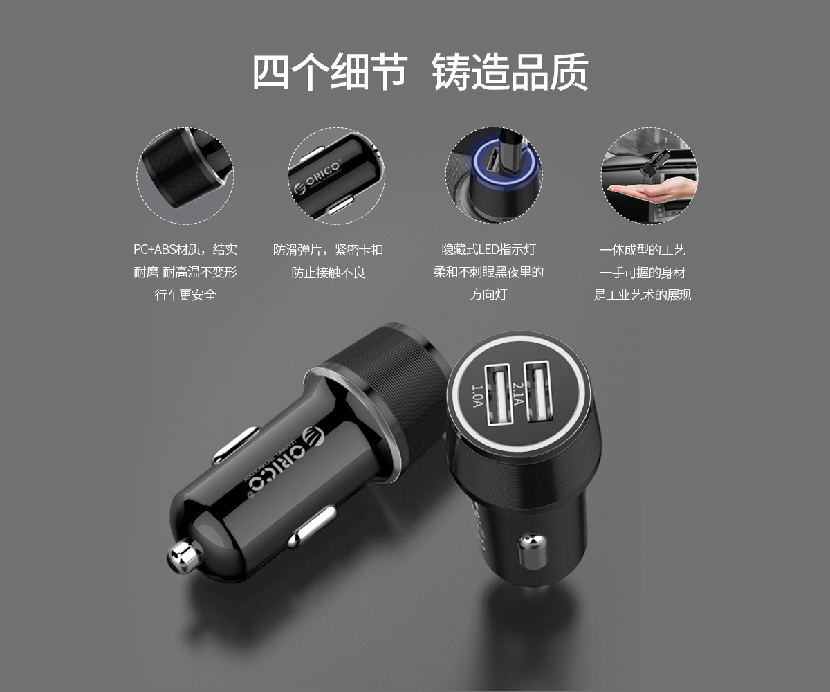 車載點煙口一拖二USB口抗干擾多重保護充電器
