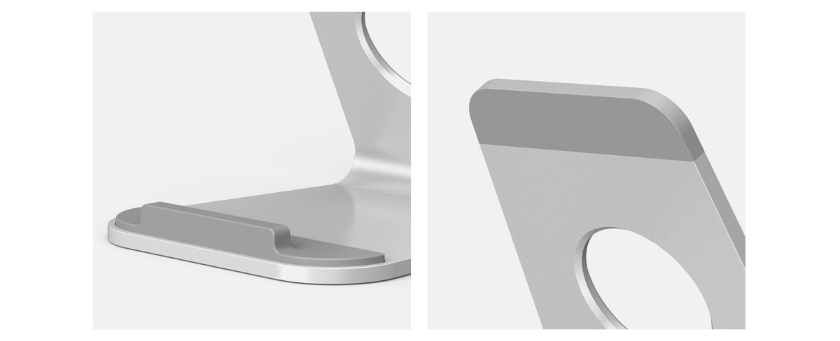 在上下接觸點帶有硅膠防滑墊,配合三角形穩定設計,手機/平板放置不會滑動。