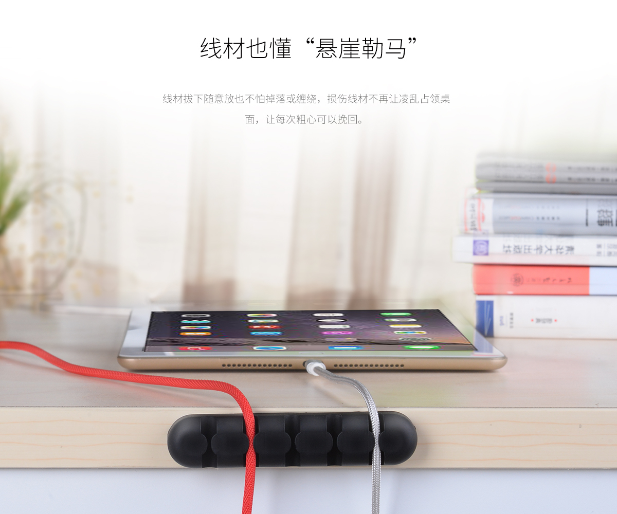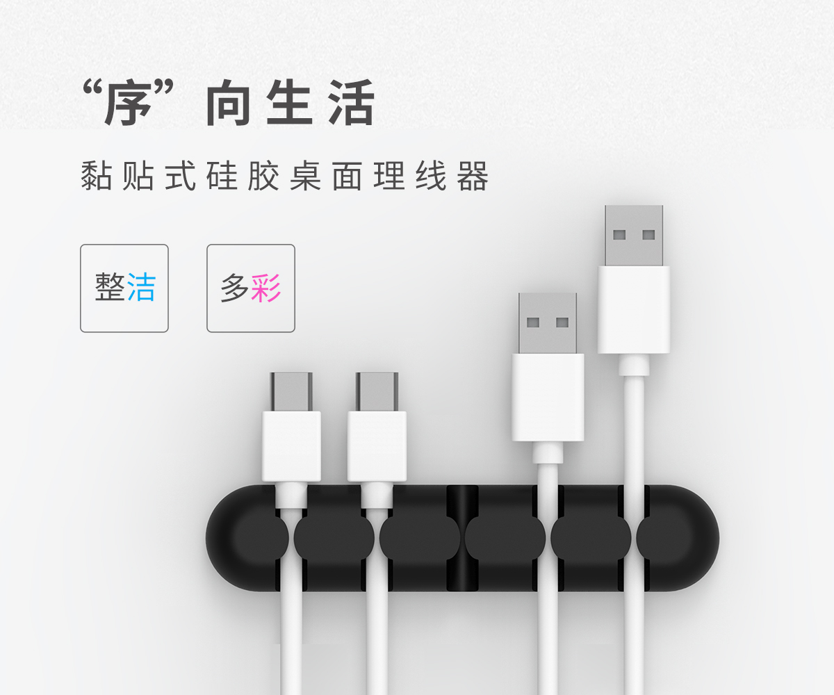 多色可選,硅膠材質,尺寸小巧,無痕雙面貼,桌面理線器