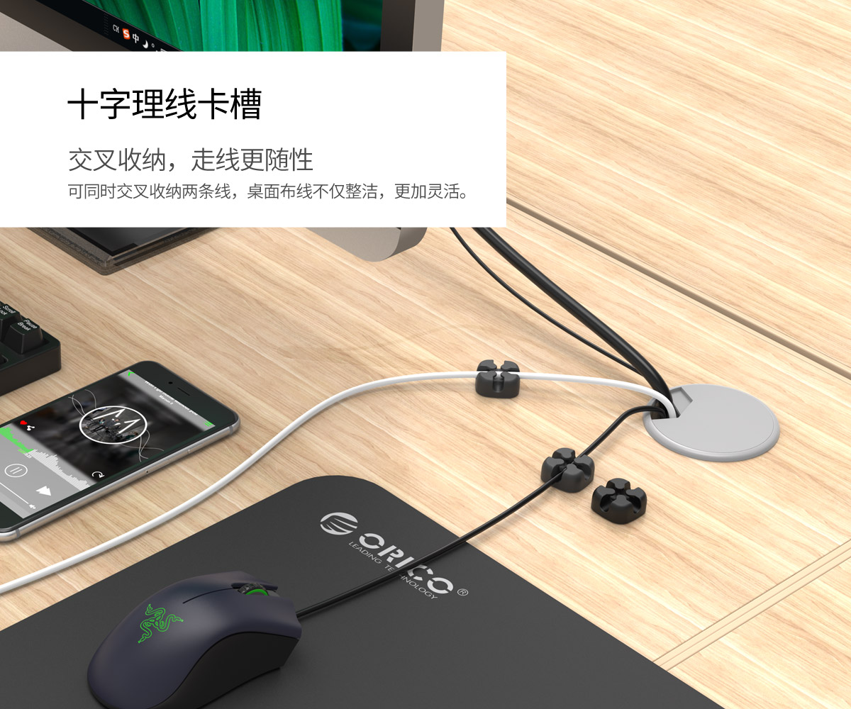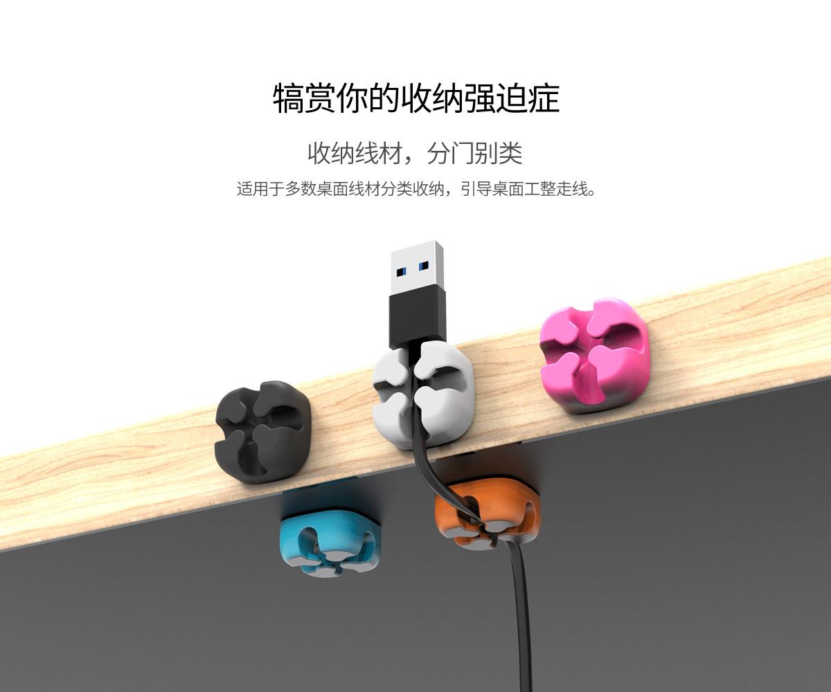 桌面理線器,十字卡槽,軟質(zhì)硅膠,3M強(qiáng)力雙面膠,五色可選