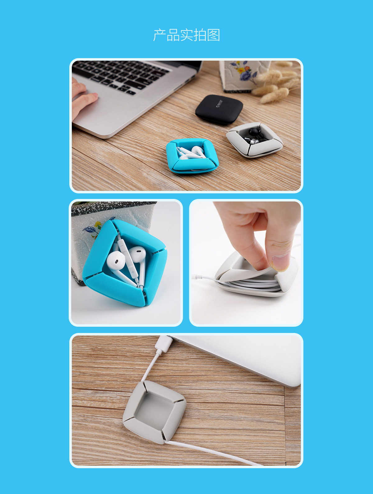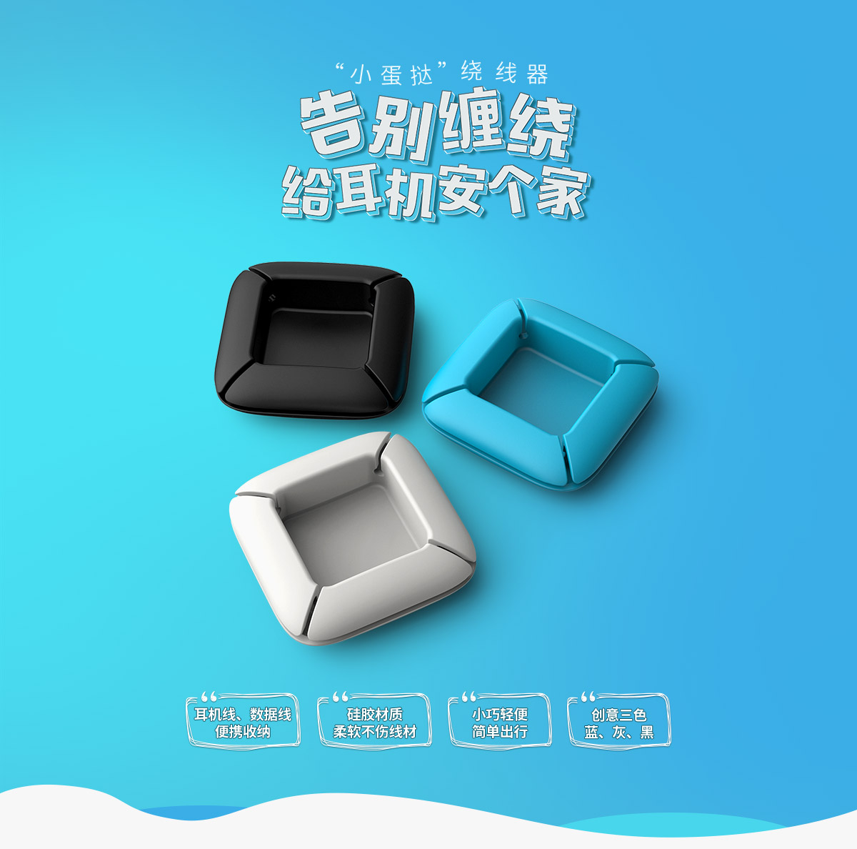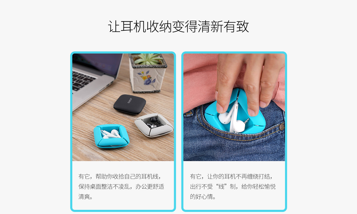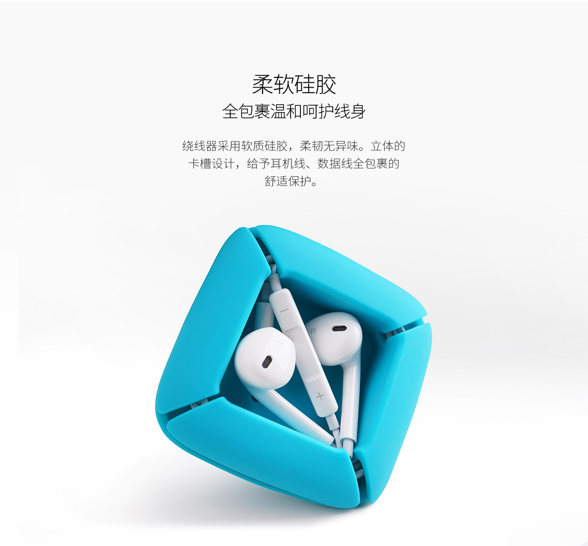 柔軟硅膠材質,耳機線收納,5秒收線,直接水洗,三色可選