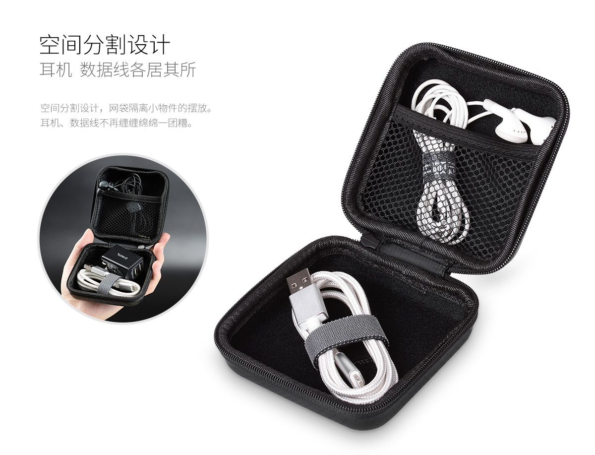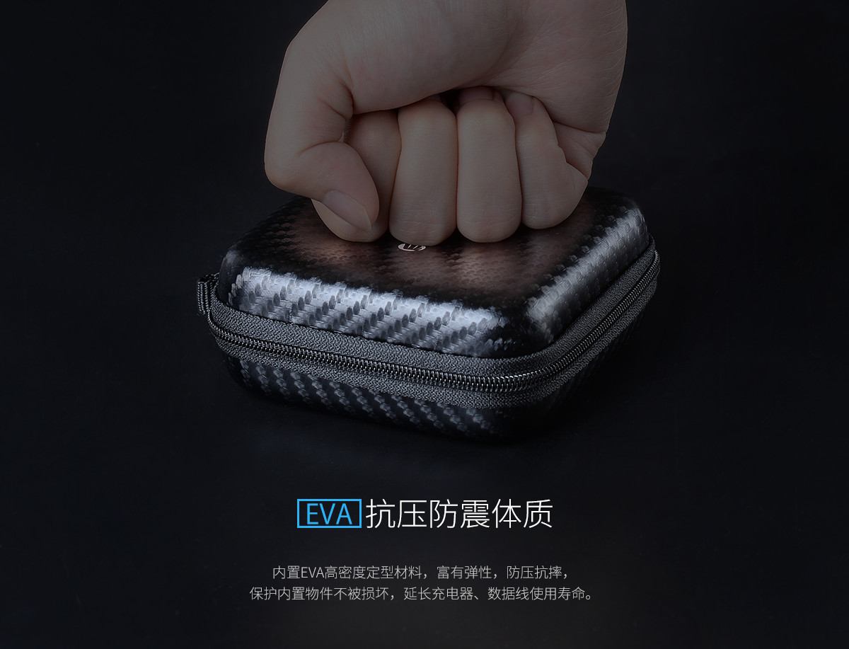 EVA抗壓防震 小型數碼配件收納 天然草革紋理 防水耐磨 便捷式卡扣