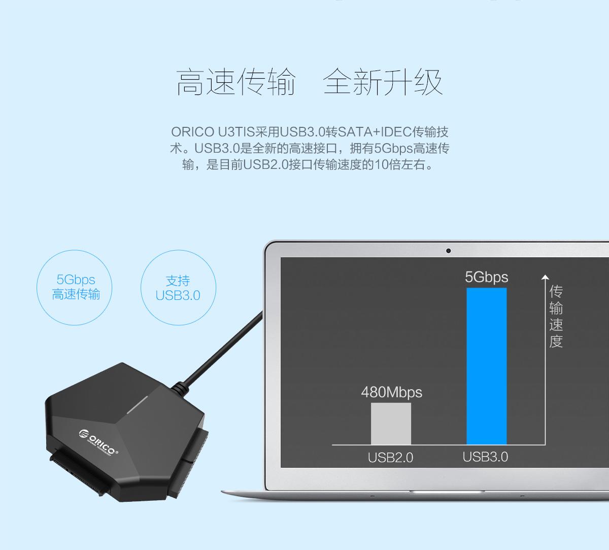 USB3.0全新的高速接口,擁有5Gbps高速傳輸,是USB2.0接口傳輸速度的10倍左右。