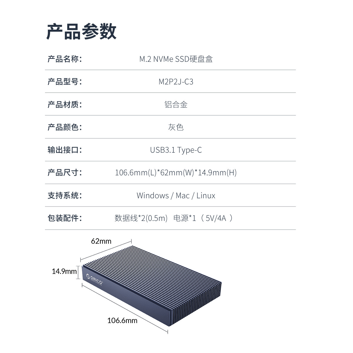 Type-c雙盤位M.2 NVMe硬盤盒,利用條紋散熱棱擴大散熱面積,雙盤位4TB