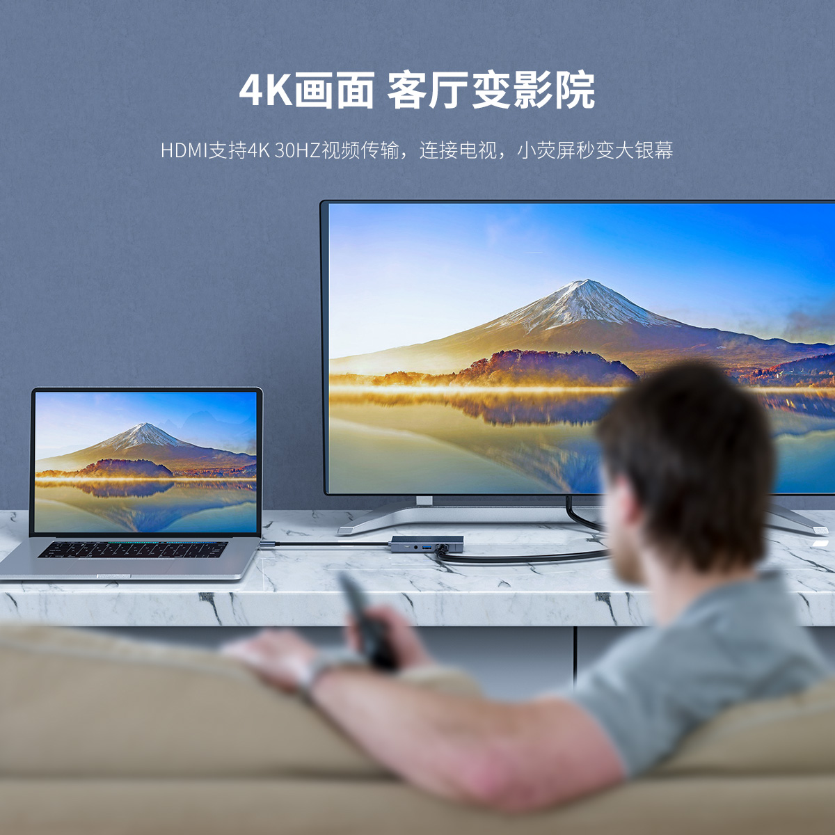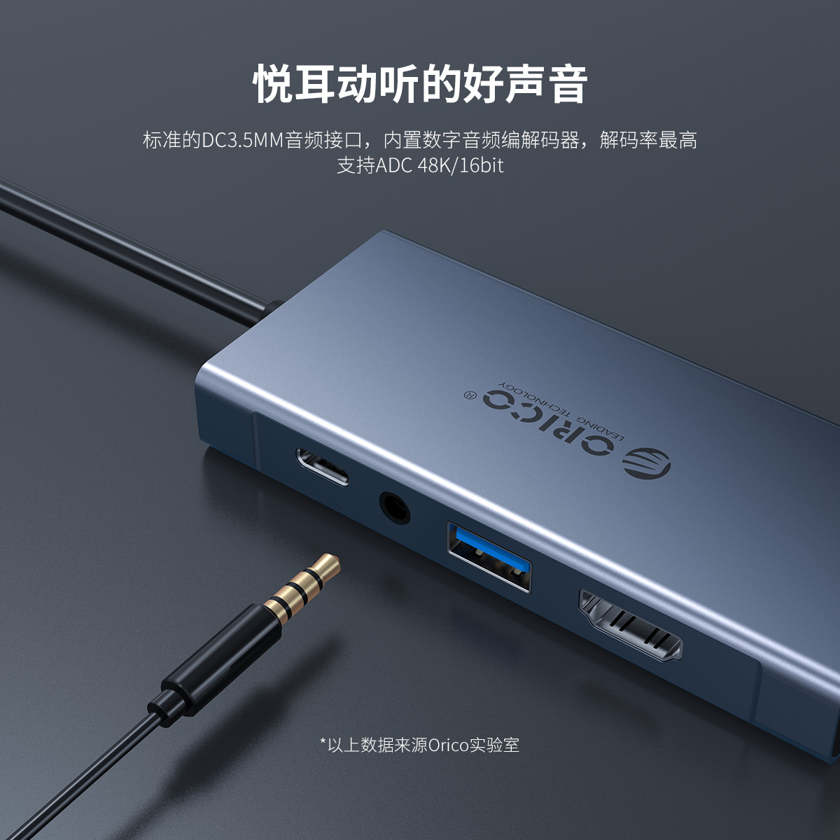 五口擴展,USB Type-C口支持PD2.0,HDMI支持4K 30HZ視頻傳輸,HDMI+VGA雙視頻接口,標準的DC3.5MM音頻接口,內置數字音頻編解碼器