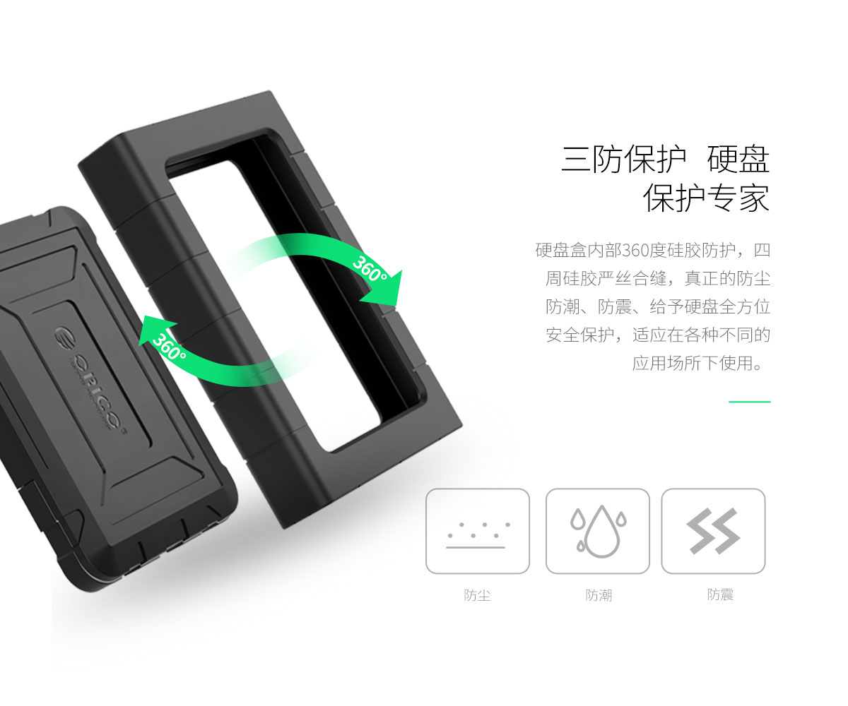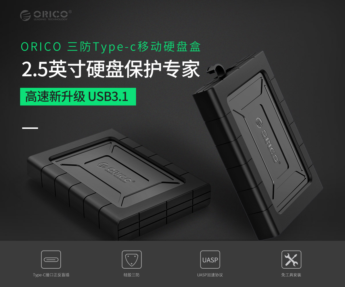 2.5英寸USB3.1 Type-C移動硬盤盒,360度硅膠防護