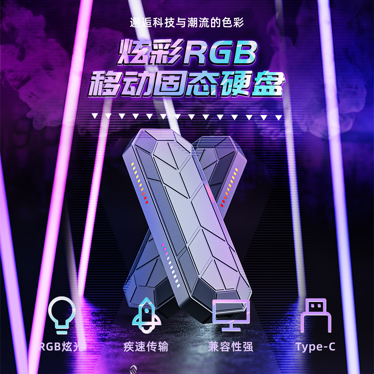 炫彩RGB便攜式SSD移動固態(tài)硬盤