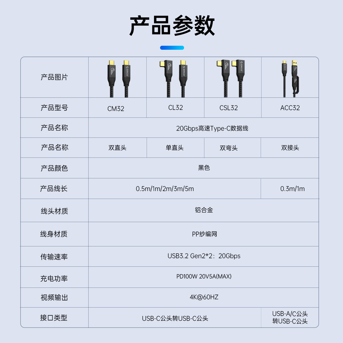 USB-C3.2 Gen2*2高速數據線(雙彎頭)