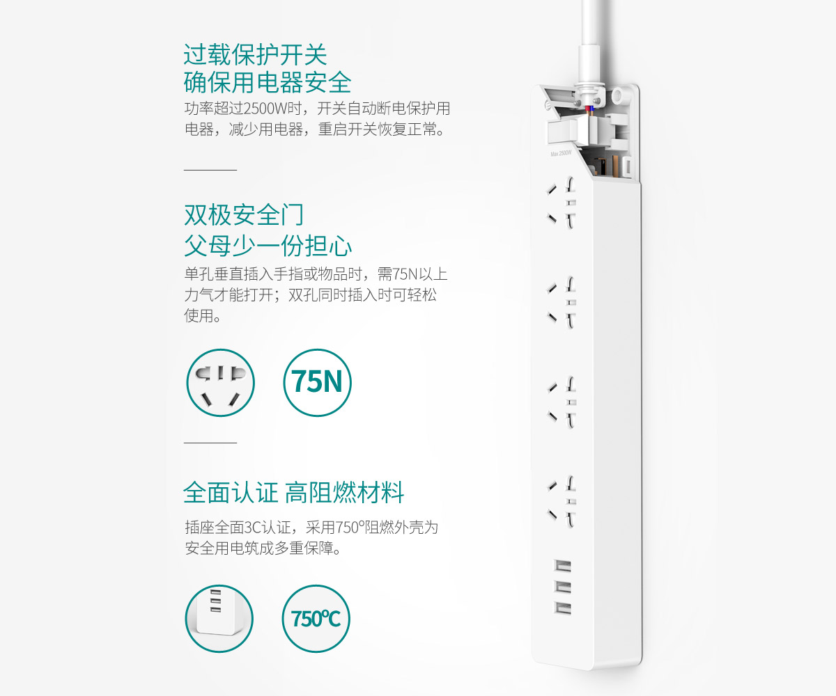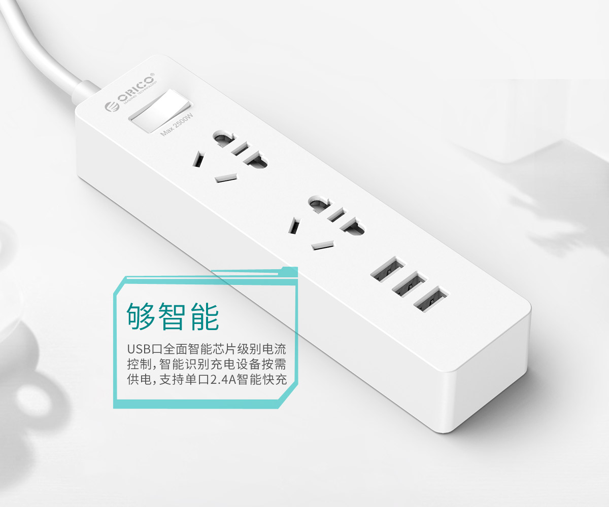 新國標便攜桌面式排插,單口支持2.4A,2500W大功率