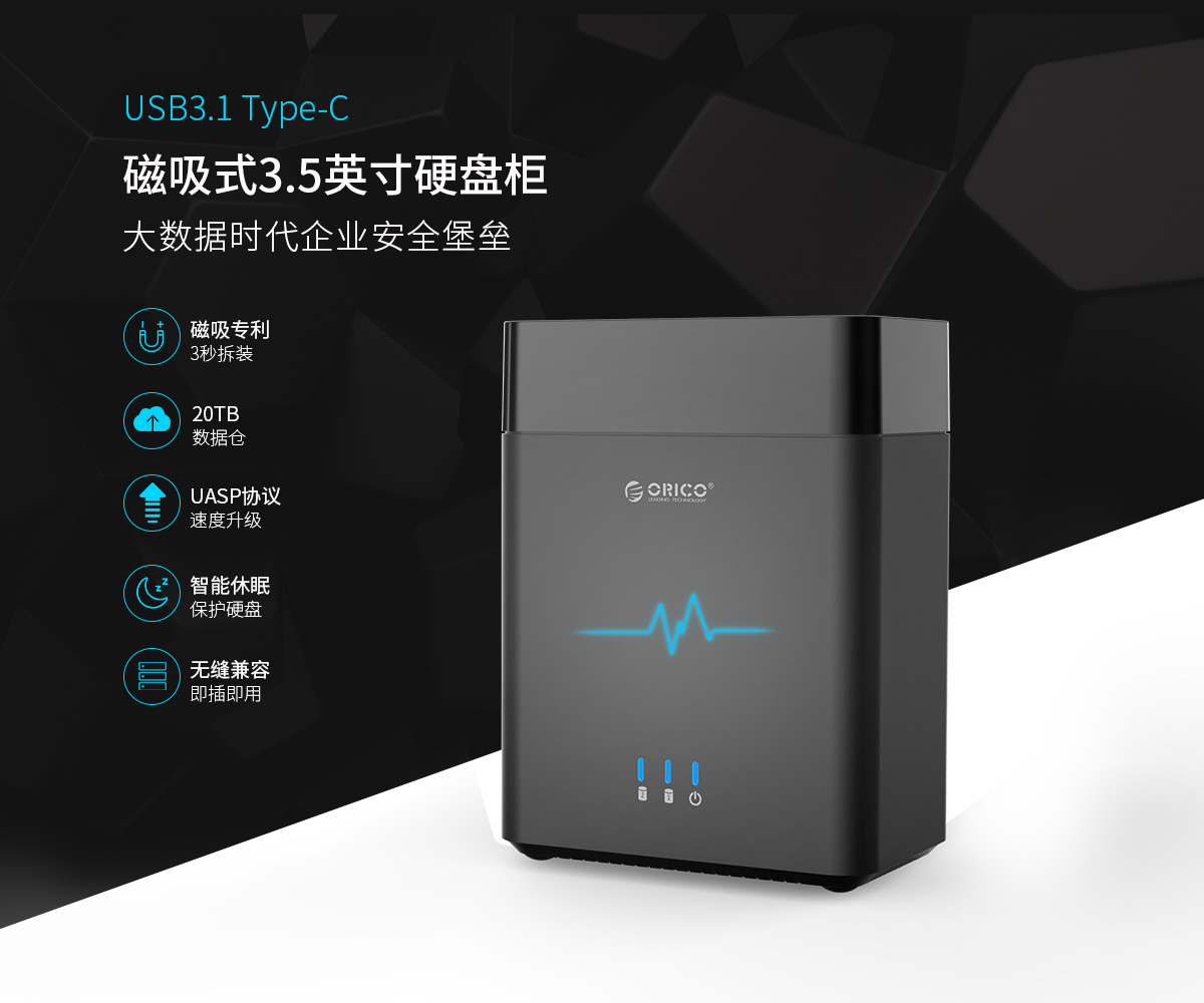 3.5英寸磁吸式雙盤位Type-C存儲硬盤柜