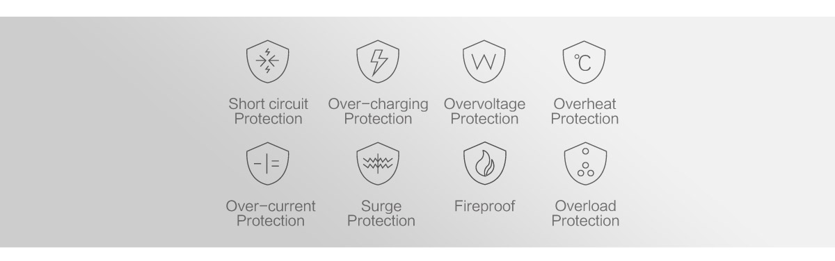 八重安全保護(hù),采用高強(qiáng)度耐高溫工程材質(zhì),配置固態(tài)電容,提供防過(guò)流、防過(guò)壓、防短路、防漏電、防過(guò)充、防過(guò)熱、過(guò)載保護(hù)、阻燃8重保護(hù)模塊,以保證您的充電設(shè)備安全可靠。