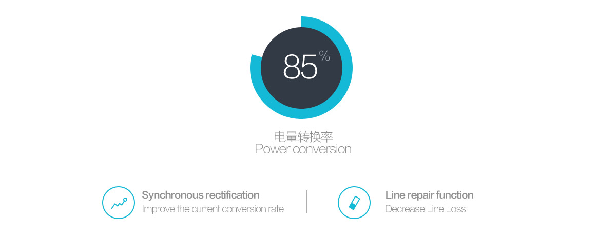 采用同步整流技術(shù),大幅提高電流轉(zhuǎn)換效率,充電效率高達(dá)85%,另外還有線補(bǔ)功能,減少損耗,進(jìn)一步保障充電效率。打會(huì)盹的時(shí)間手機(jī)就充滿了。