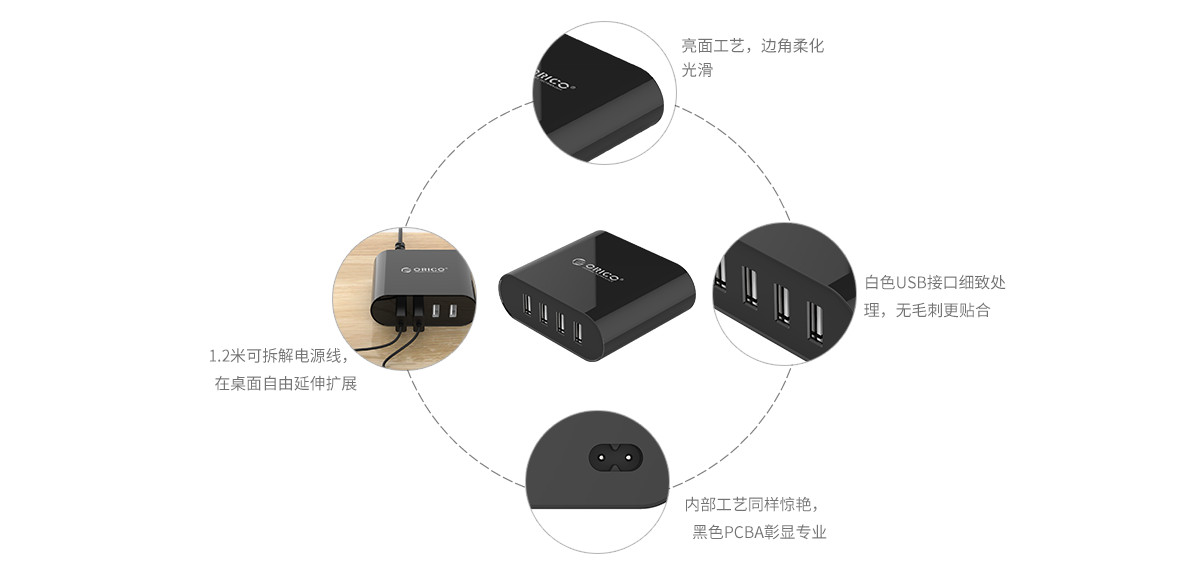 是否充電速度不夠快?是否充電頭還會燙手?因為你充電器的工作效率真的太低了! DCH-4U采用PCB工藝打造,采購進口零器件的用料與電路設計,內部細節精工細作,減少充電過程的能量損耗,降低發熱的同時還能提高充電效率。