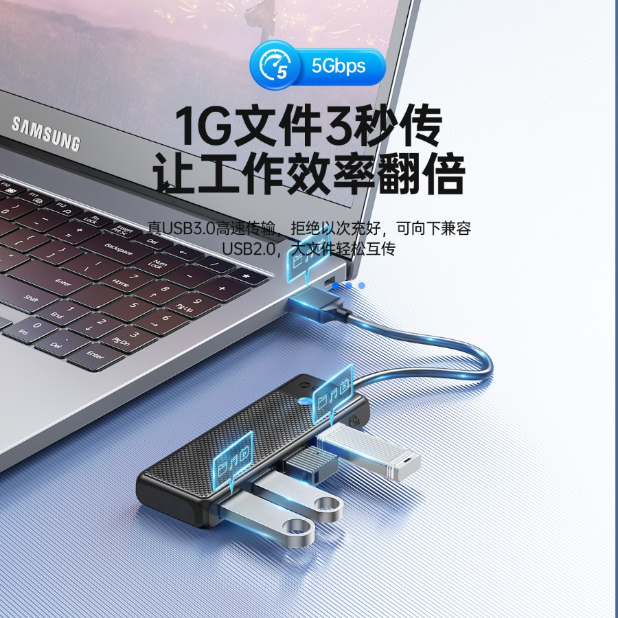 側(cè)插4口USB3.0集線器