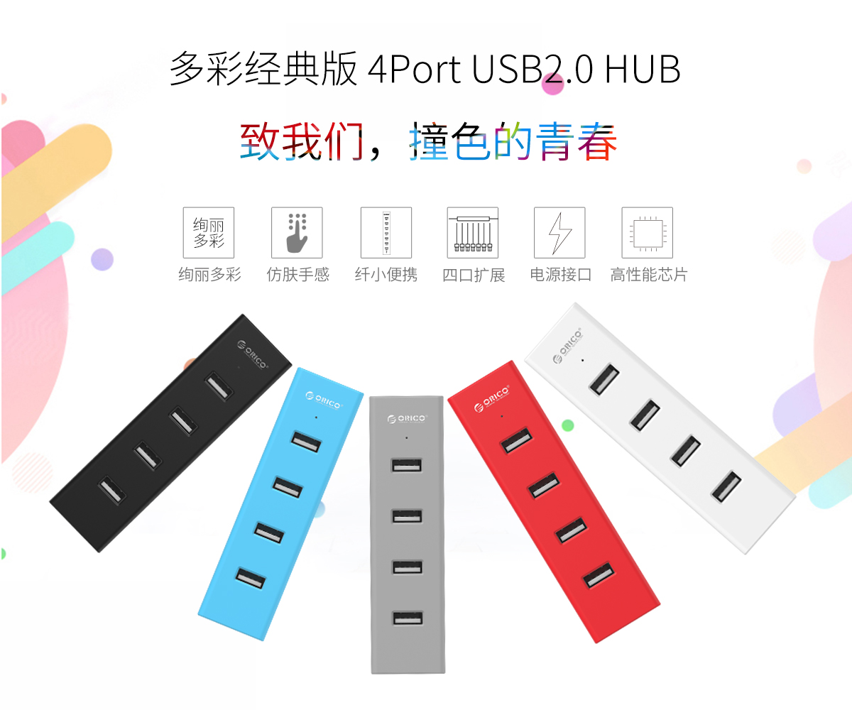 4口USB2.0集線器,多色可選