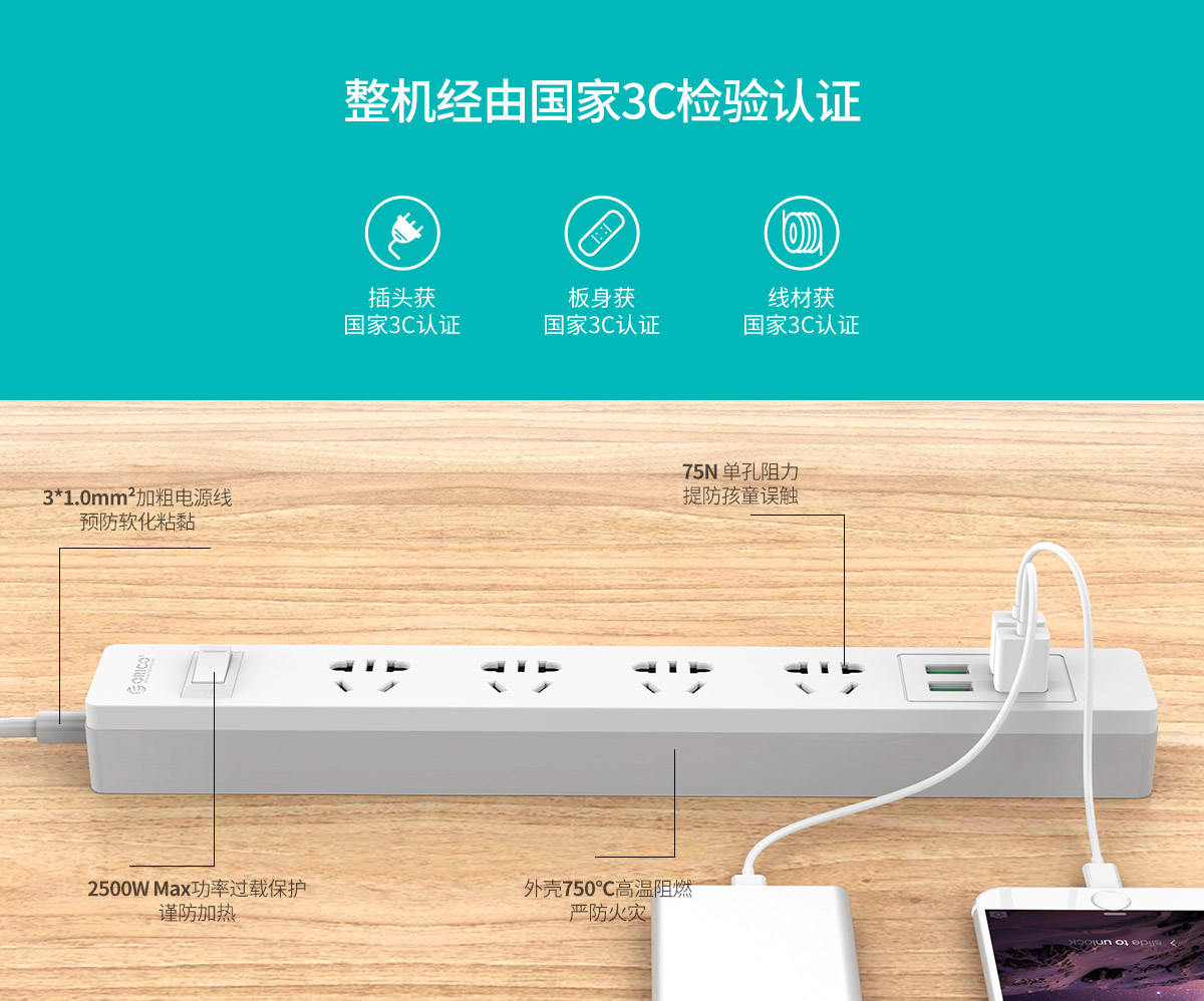智能總控 環保耐高溫,新國標,單口智能識別5V2.4A,總輸出5V4A 20W