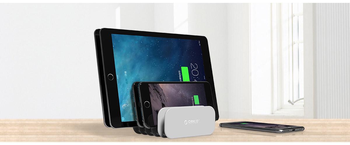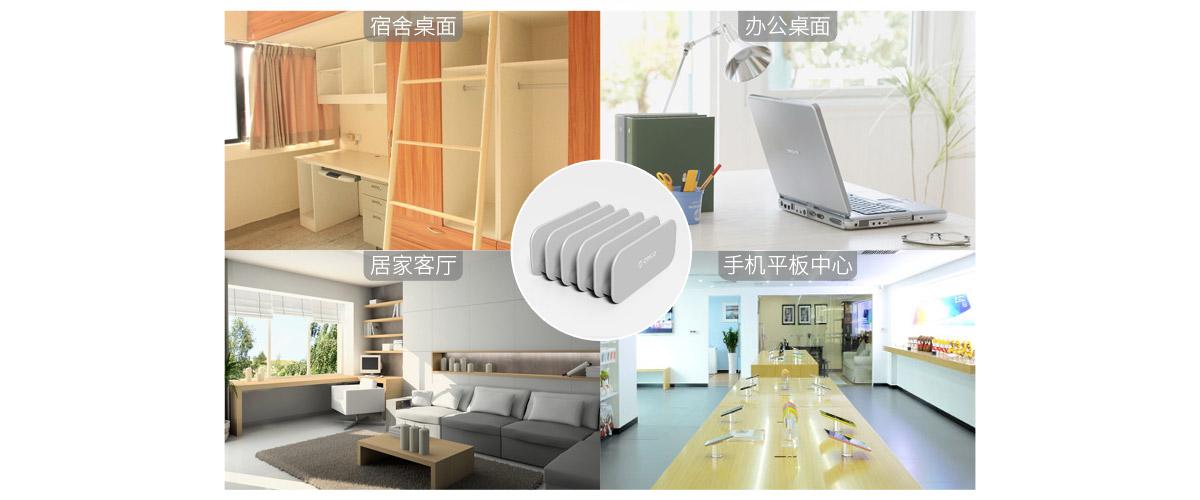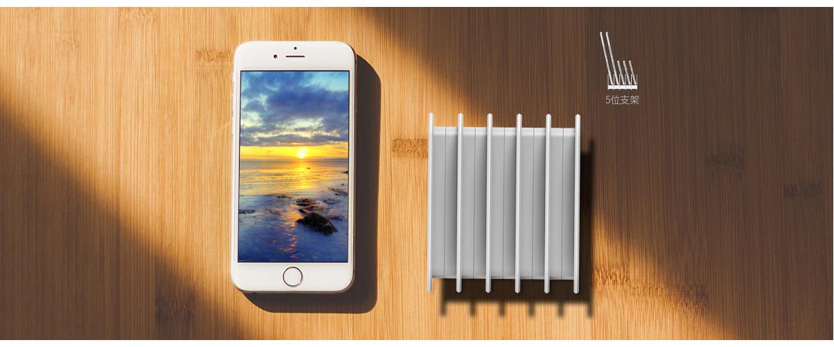 每一個(gè)數(shù)碼設(shè)備均可放置在支架上充電,無需占據(jù)過多的桌面面積,簡單方便。任何手機(jī)、平板均可輕松放置,讓你的桌面變得整潔簡單