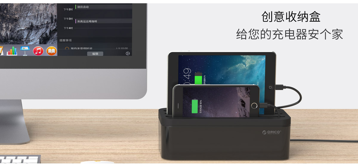 兼容多種桌面充電器。采用科學的凹槽設計,可放置多個設備,支持手機,平板(視平板大小而定)