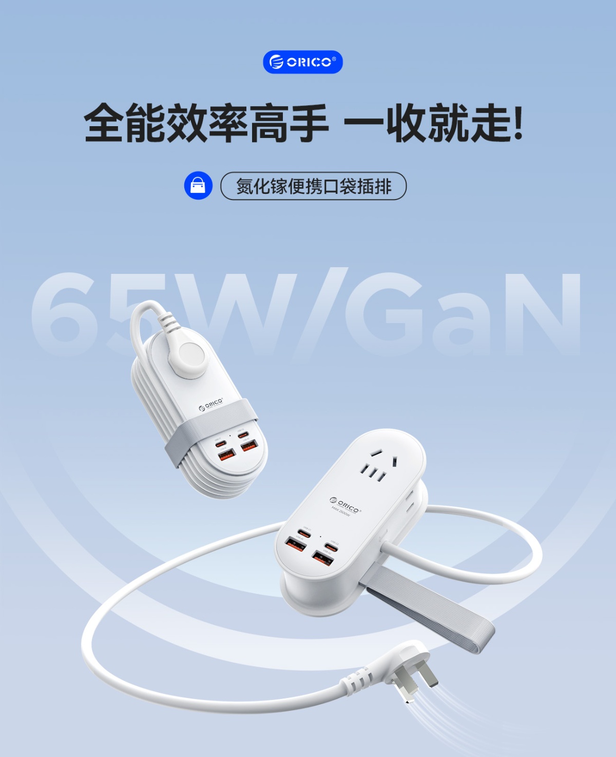 65W氮化鎵超級快充口袋排插