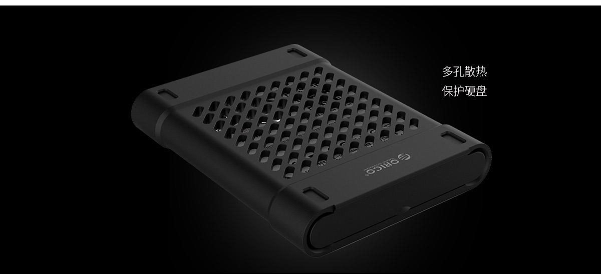 充分考慮到硬盤在使用中的發熱問題,采用了散熱孔設計,為硬盤提供良好的散熱條件,更好的保護您的硬盤,延長硬盤的使用壽命。