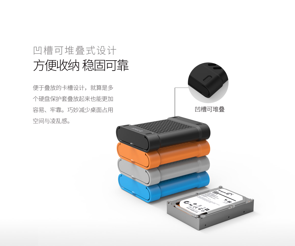 可直連硬盤易驅(qū)線讀取數(shù)據(jù),多散熱孔設計,凹槽可堆疊,方便收納,多色可選