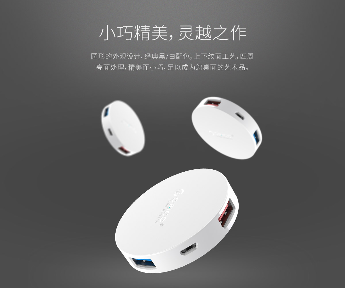4口USB3.0圓形桌面集線器,預留供電口