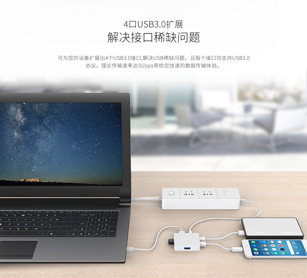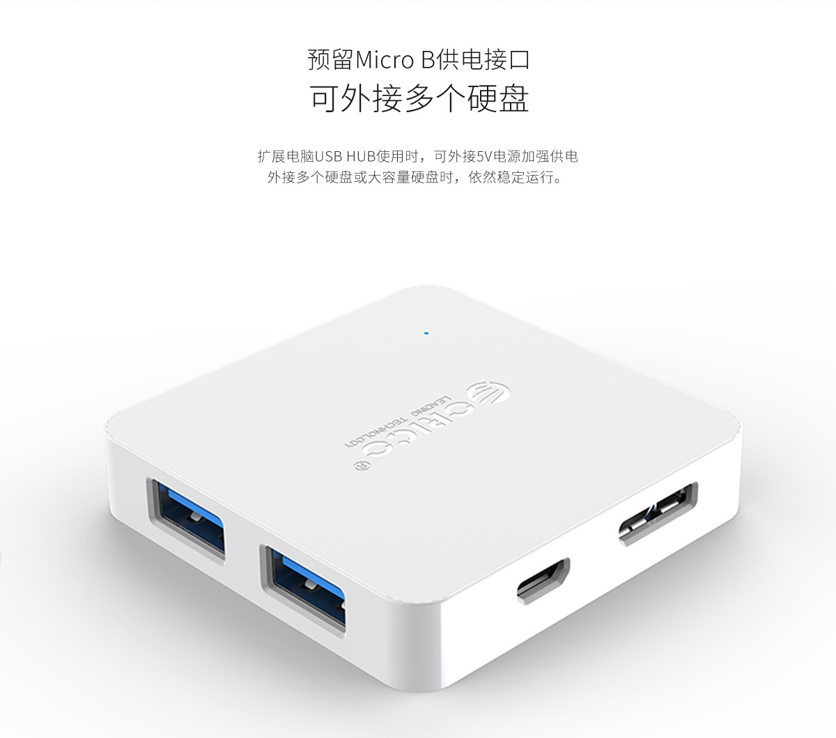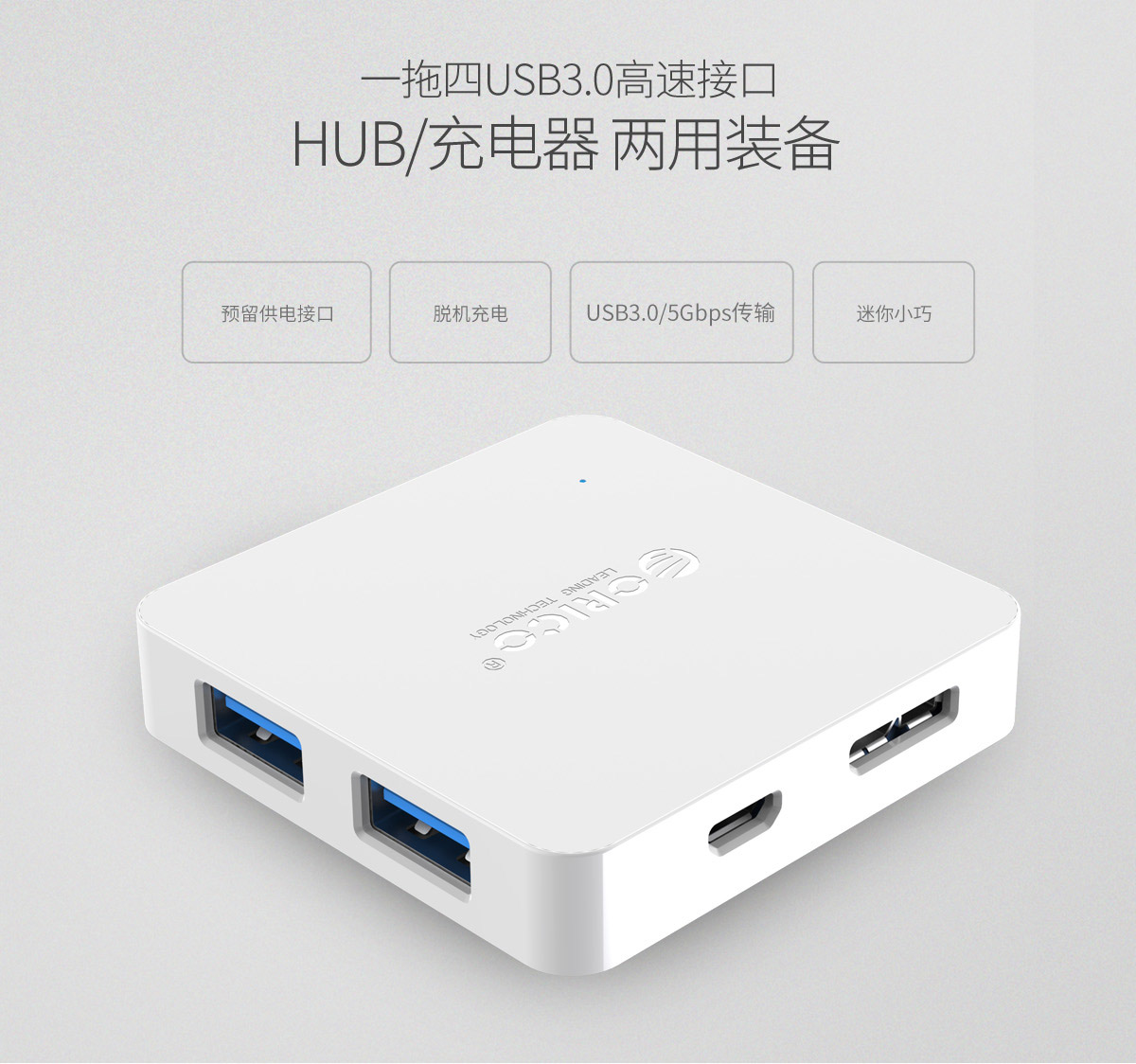 4口USB3.0方形桌面集線器,預(yù)留供電口