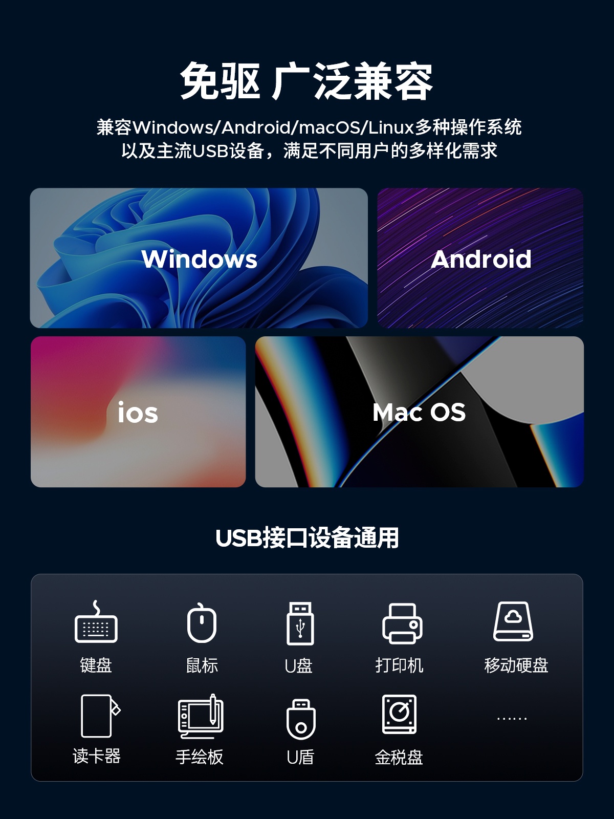 有源多口集線器 LED指示燈 VL812芯片方案 分離式設計 過載保護