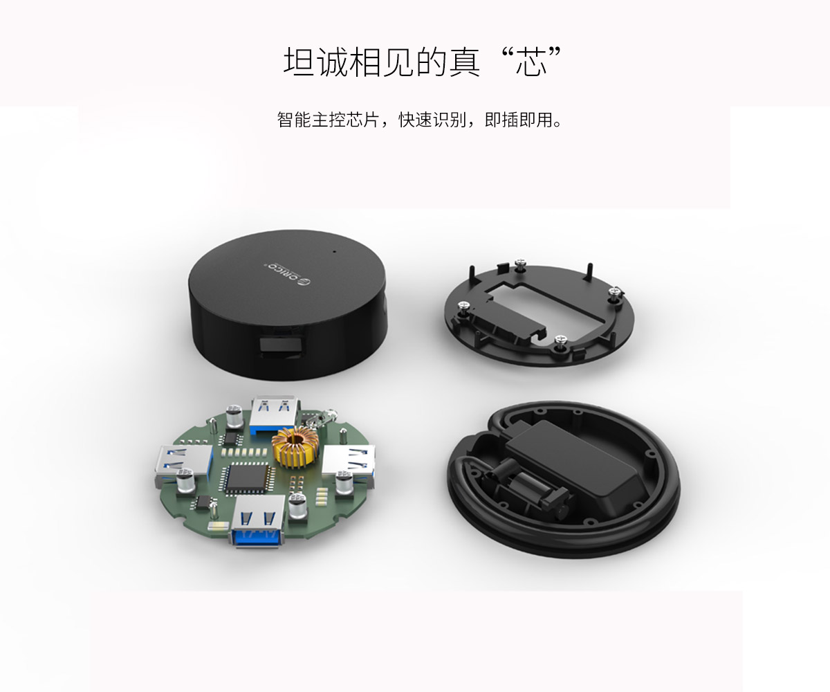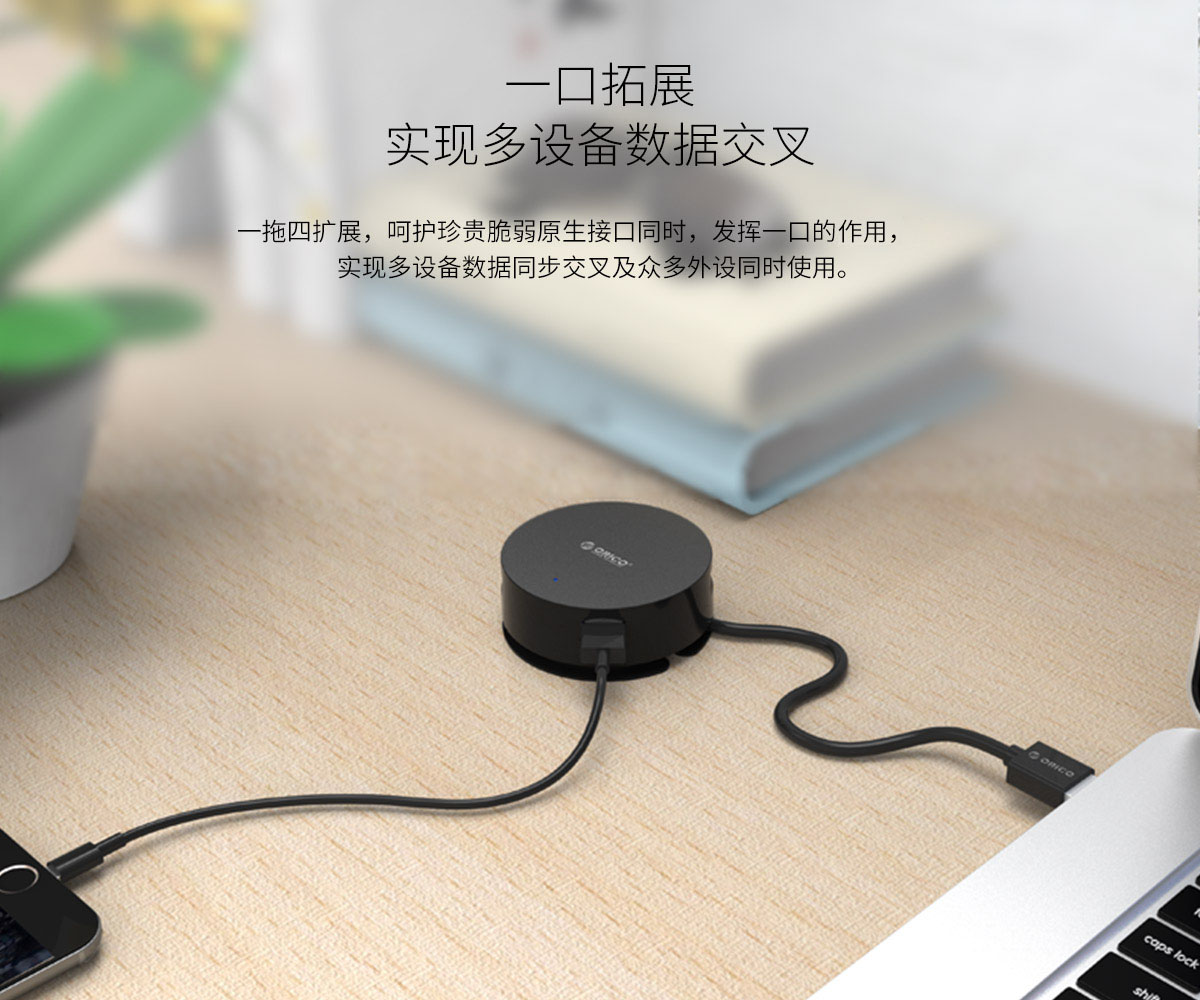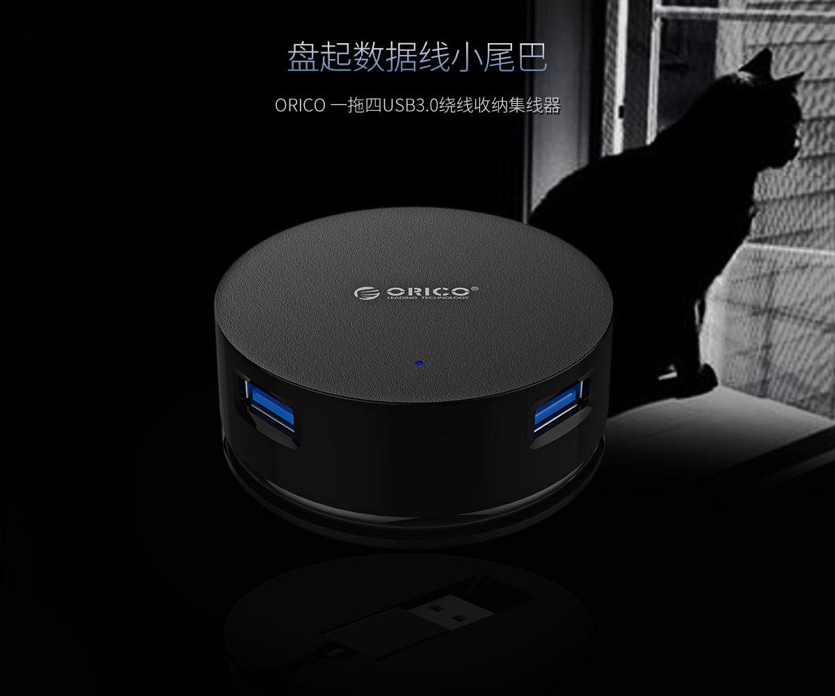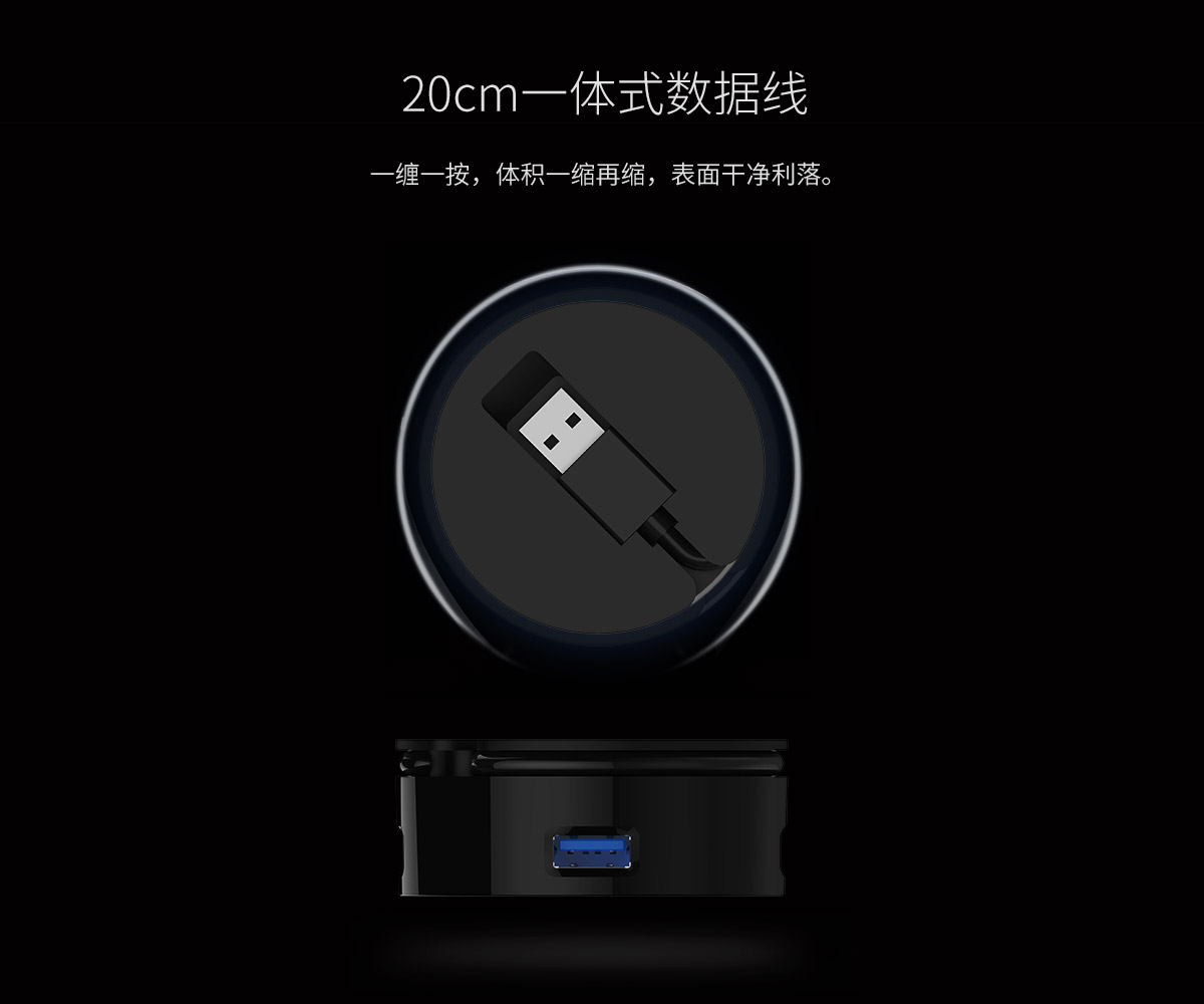 繞線收納集線器 4口USB3.0擴(kuò)展 一體式數(shù)據(jù)線 圓形外觀