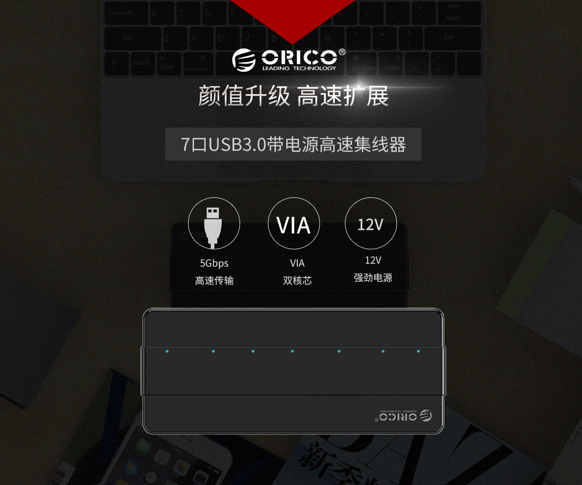 7口HUB,一拖7,12V強勁電源,外觀簡潔
