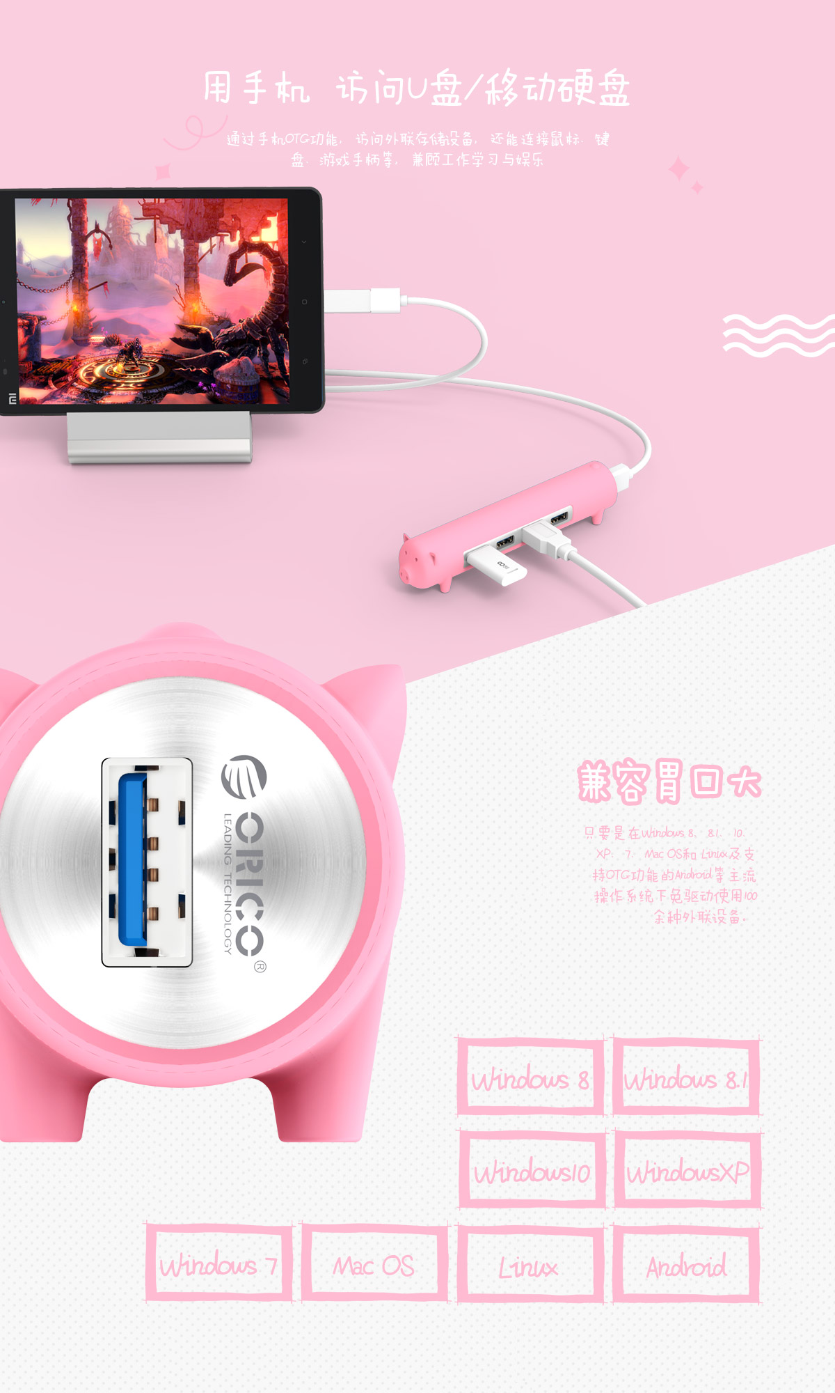 鋁合金打造 防滑硅膠外殼 多色可選 小豬萌寵造型 4口USB集線器