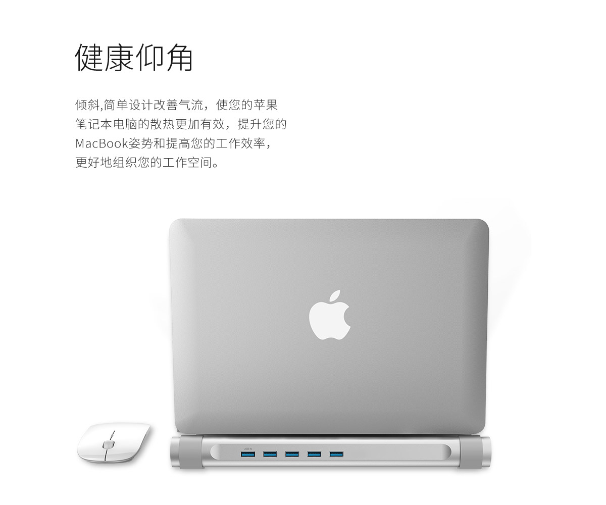 4口USB擴展 帶支架功能 穩定防滑 健康仰角設計 MAC風