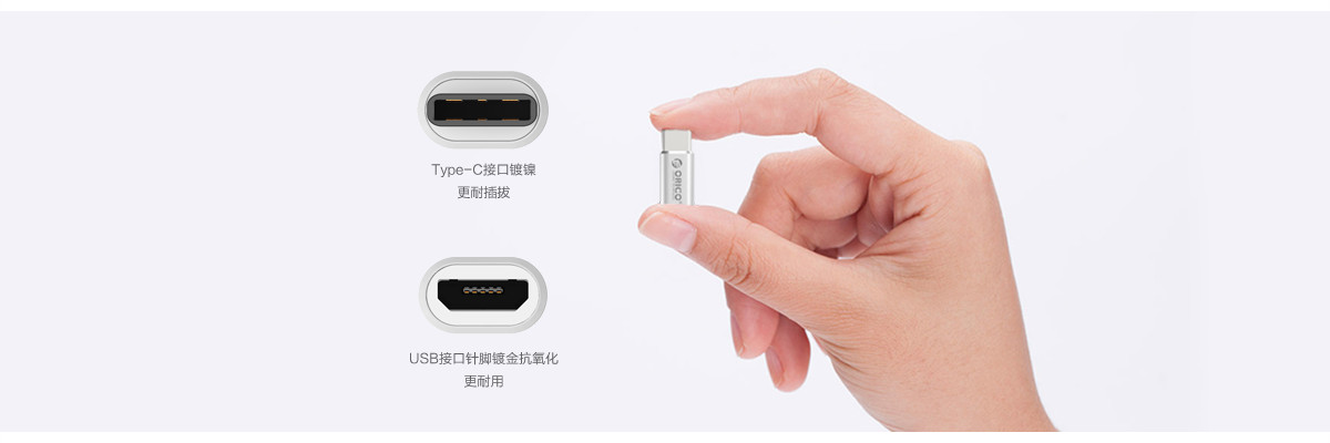 跟普通安卓充電線的Micro接頭的大小相差無幾,體積小,攜帶更方便;USB接口針腳鍍金抗氧化,更耐用。type-c接口鍍鎳,更耐插拔。
