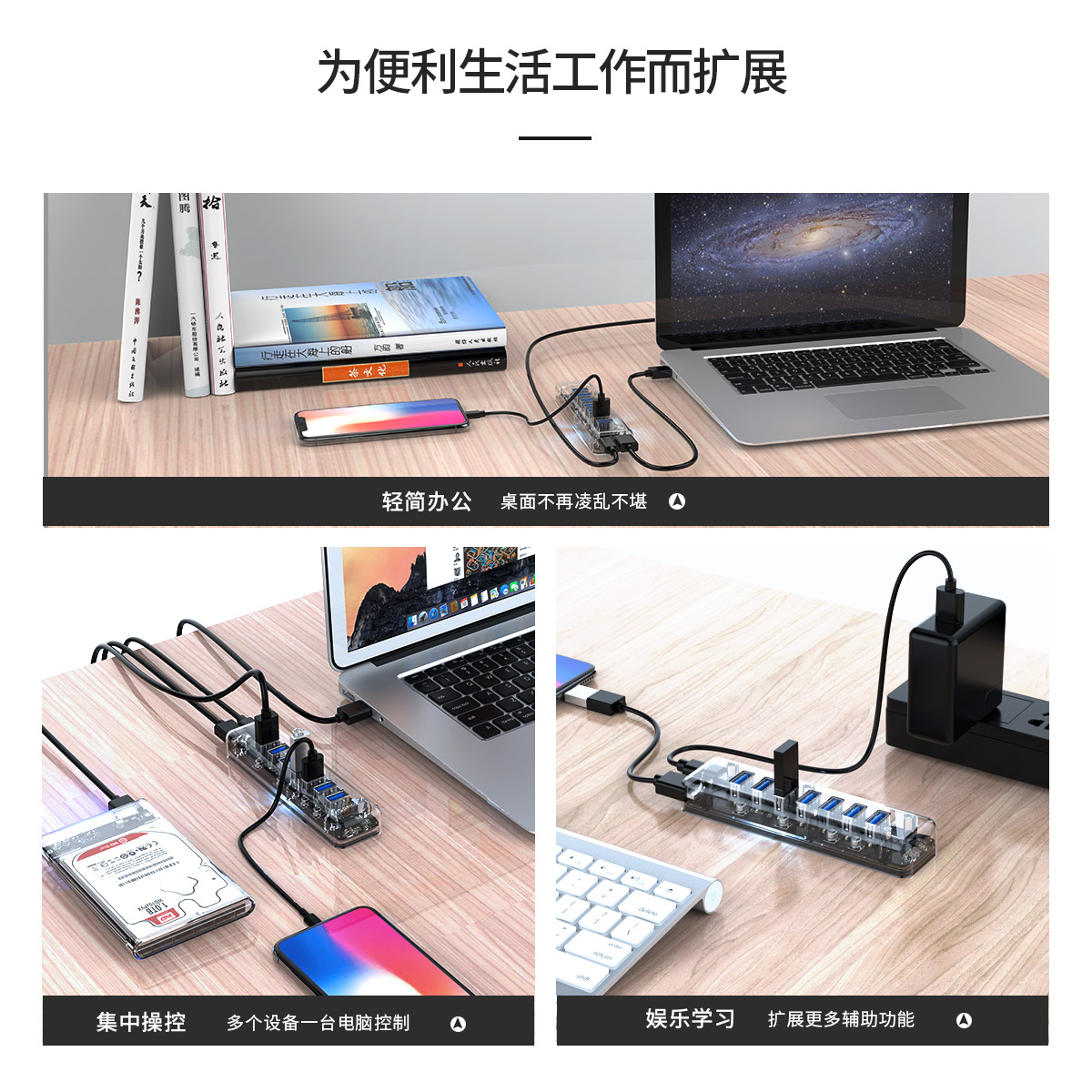 7口USB3.0透明桌面集線器,帶100cm傳輸線