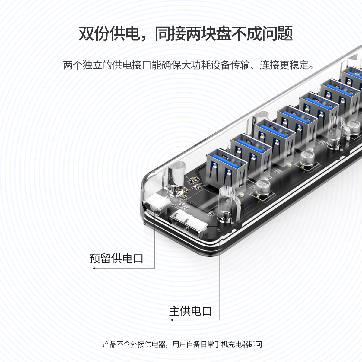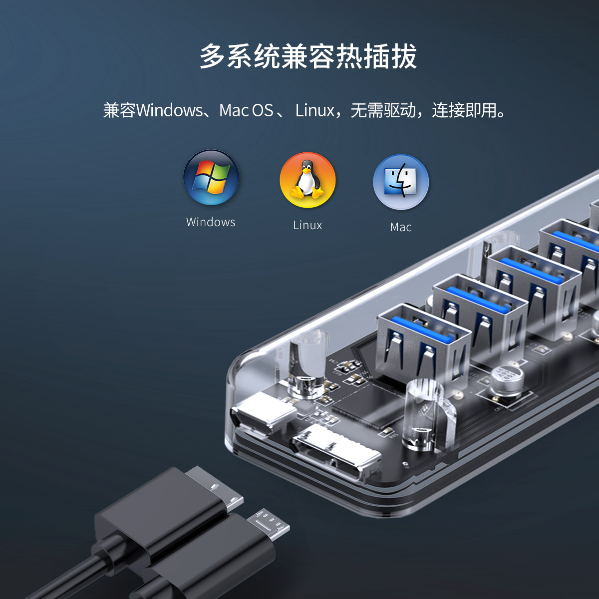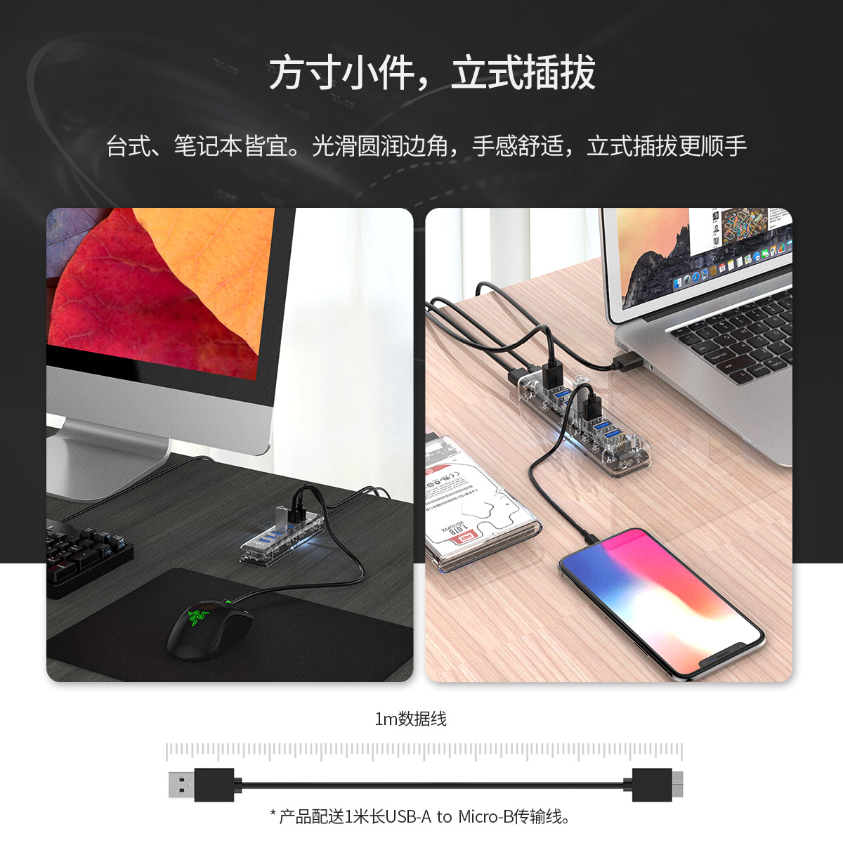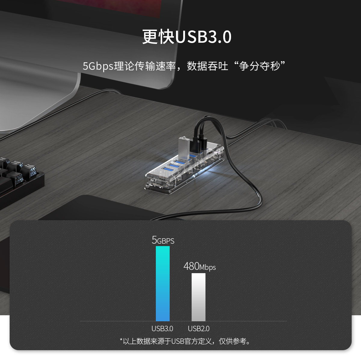 透明系列集線器 內透藍光指示燈 立式插拔設計 小巧便捷