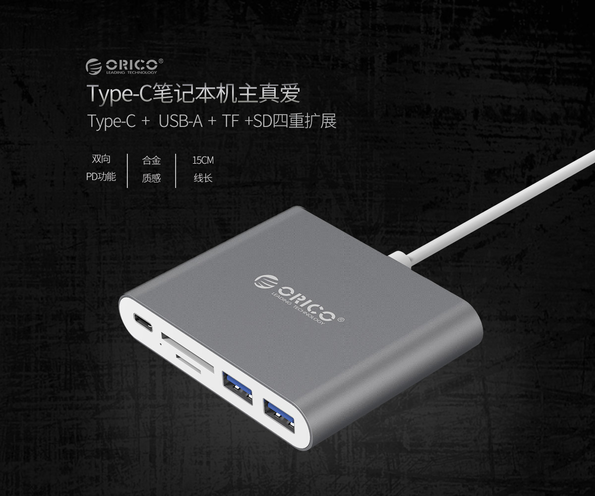 鋁合金Type-C轉Type-C/Type-A/TF/SD多功能擴展塢