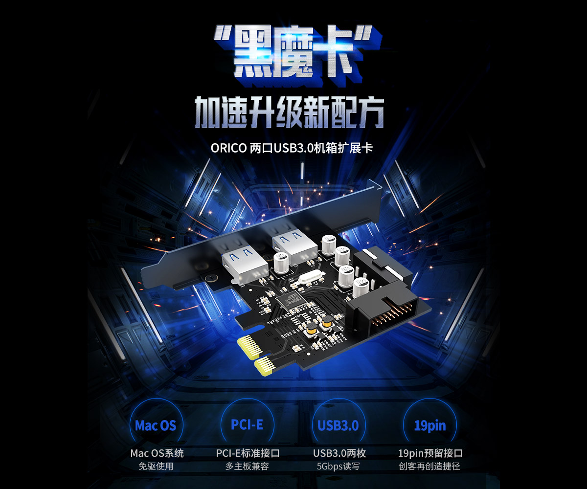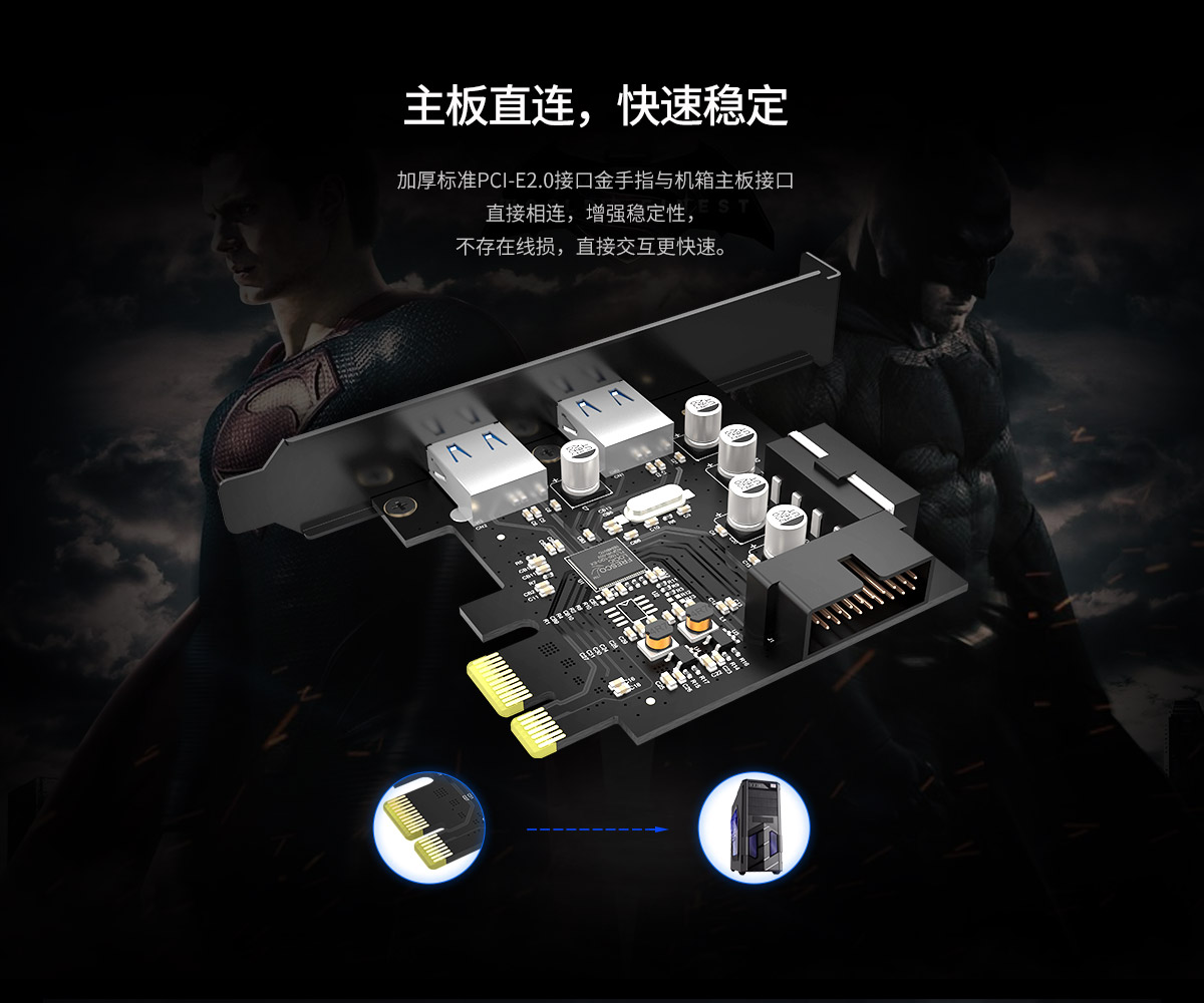 2口USB3.0 臺式機PCI-E擴展卡,預留19PIN接口
