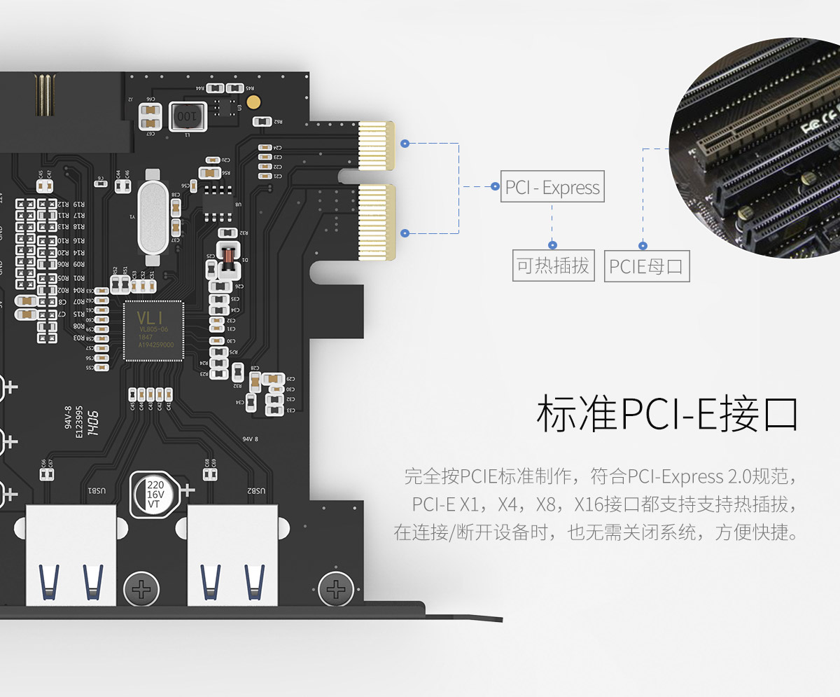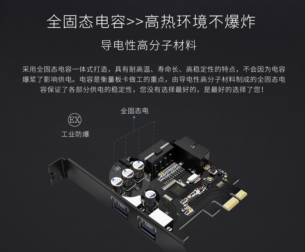 2口USB3.0 PCI-E擴展卡,全固態電容