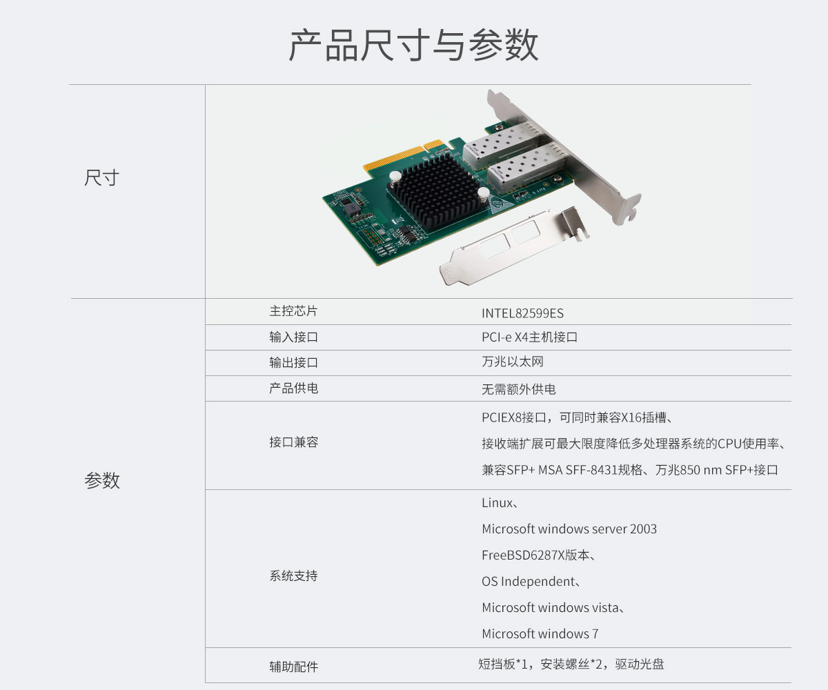 2口萬兆網卡PCI-E擴展卡,PCIEX8接口兼容X16插槽