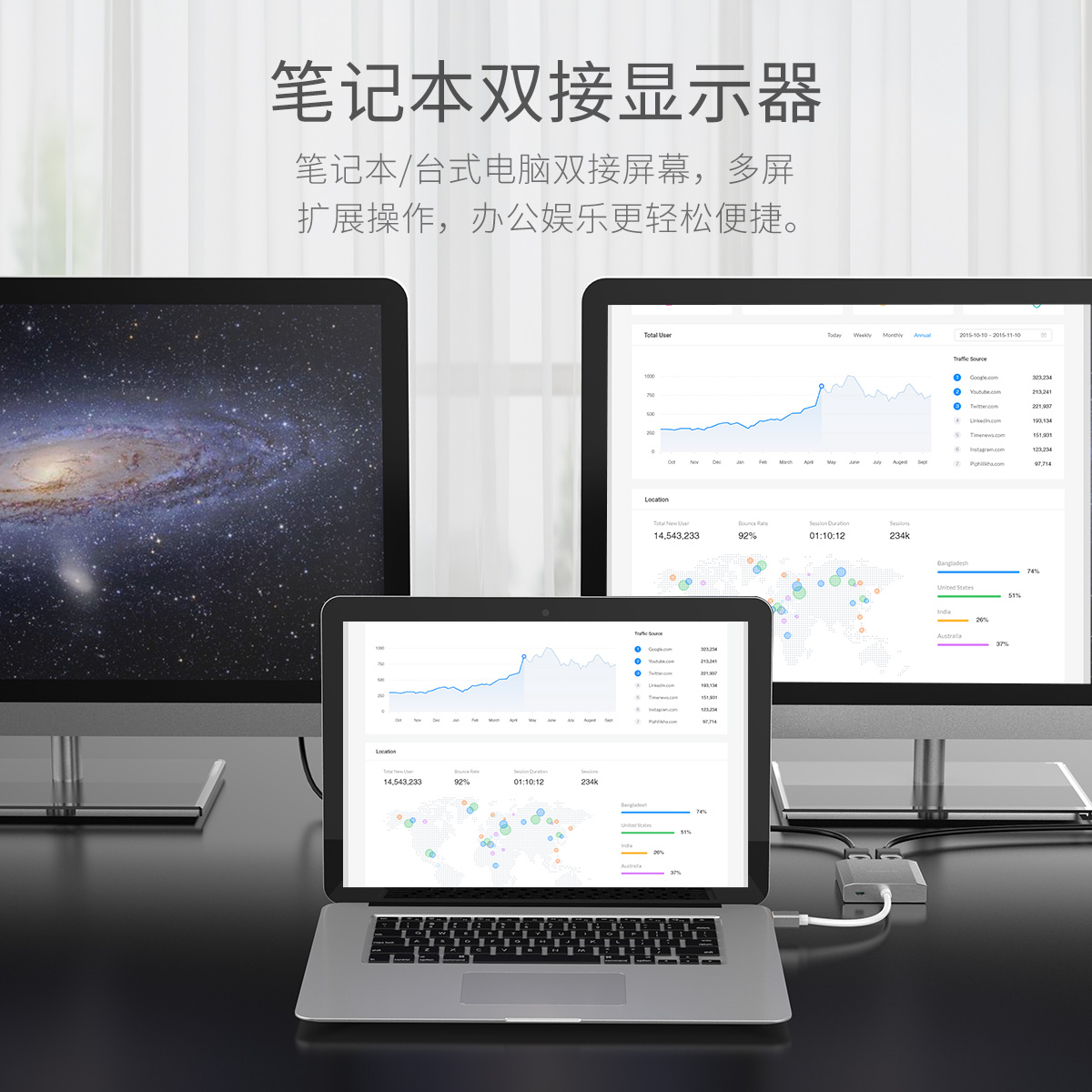 4K畫質,筆記本雙接顯示器,外接供電口,音畫同步輸出