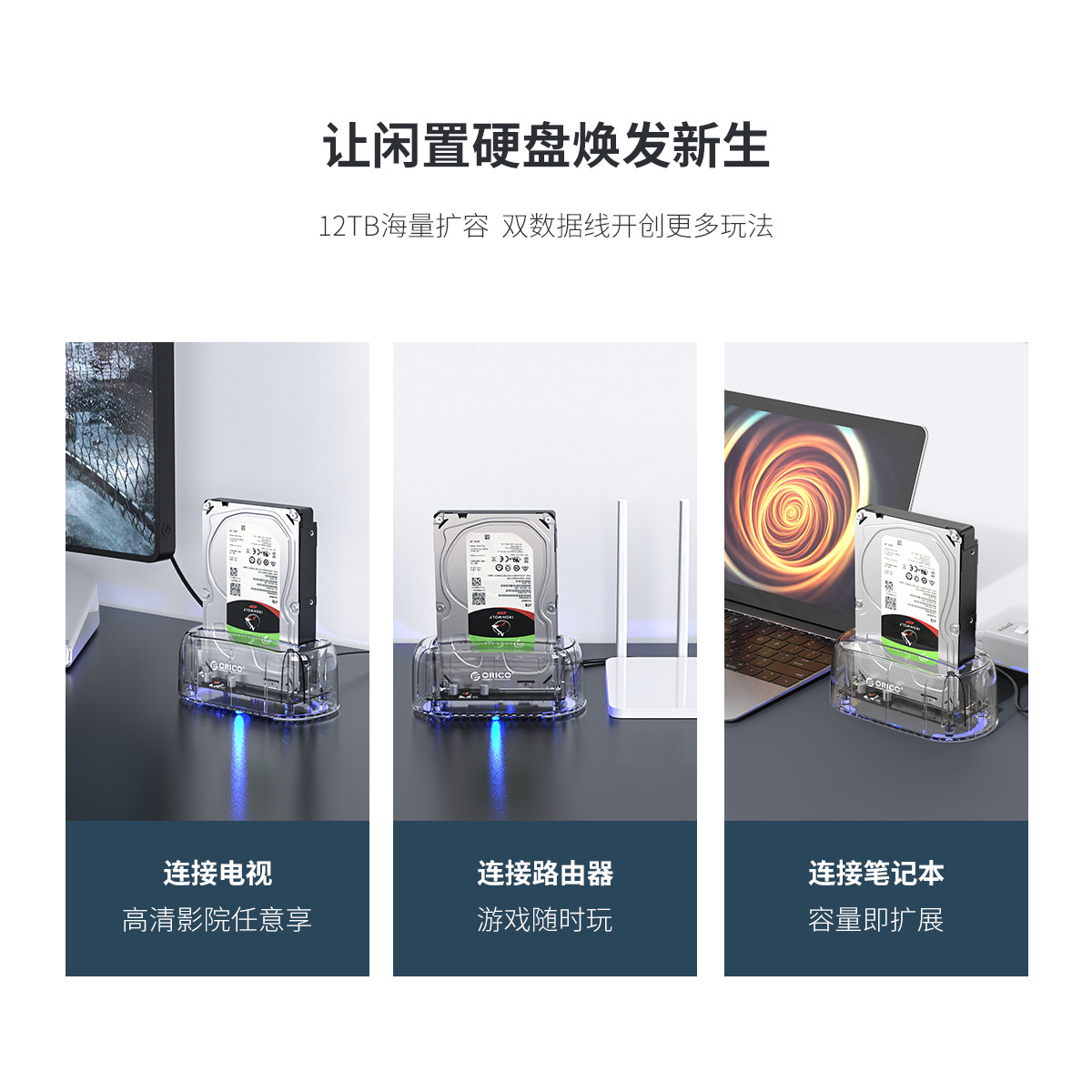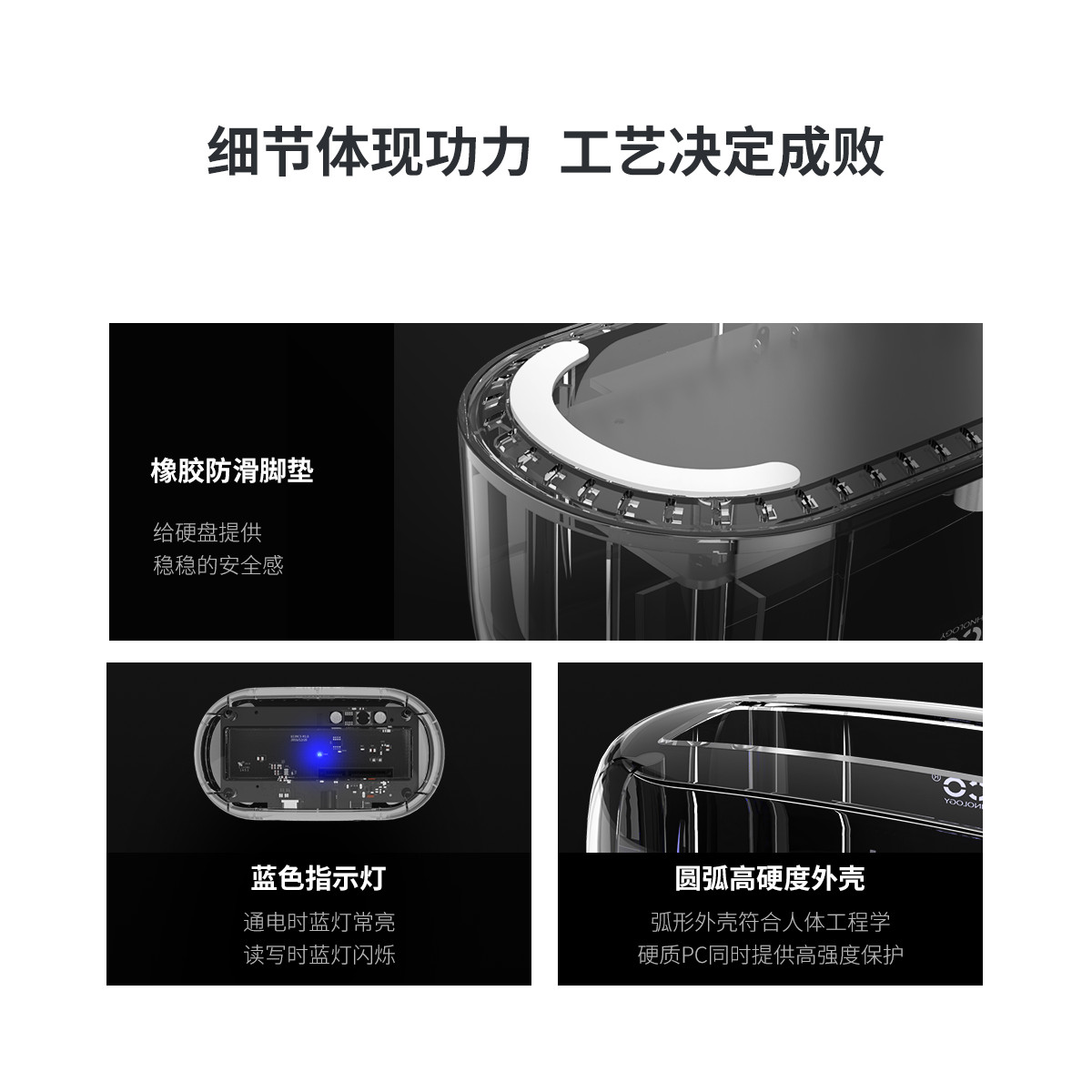 采用PC透明材質打造,全透視效果,兼容不同厚度2.5寸/3.5寸SATA硬盤/SSD固態硬盤