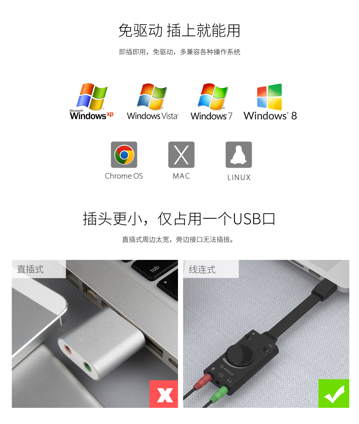 USB免驅(qū)外置聲卡,可調(diào)節(jié)音量