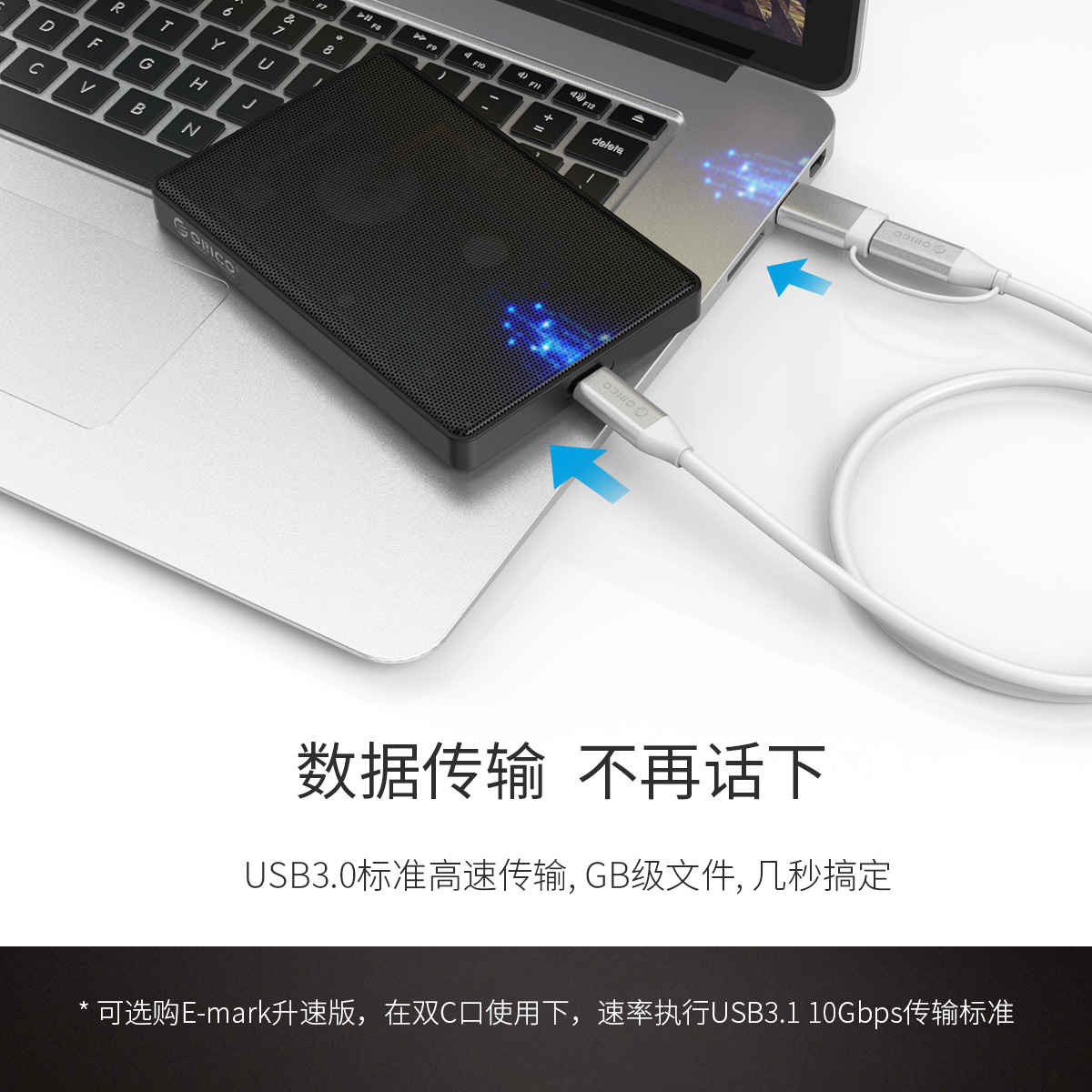 二合一接口,筆記本、手機通用,大功率輸出,標準高速傳輸,內封閉E-mark芯片,滿足更高要求。