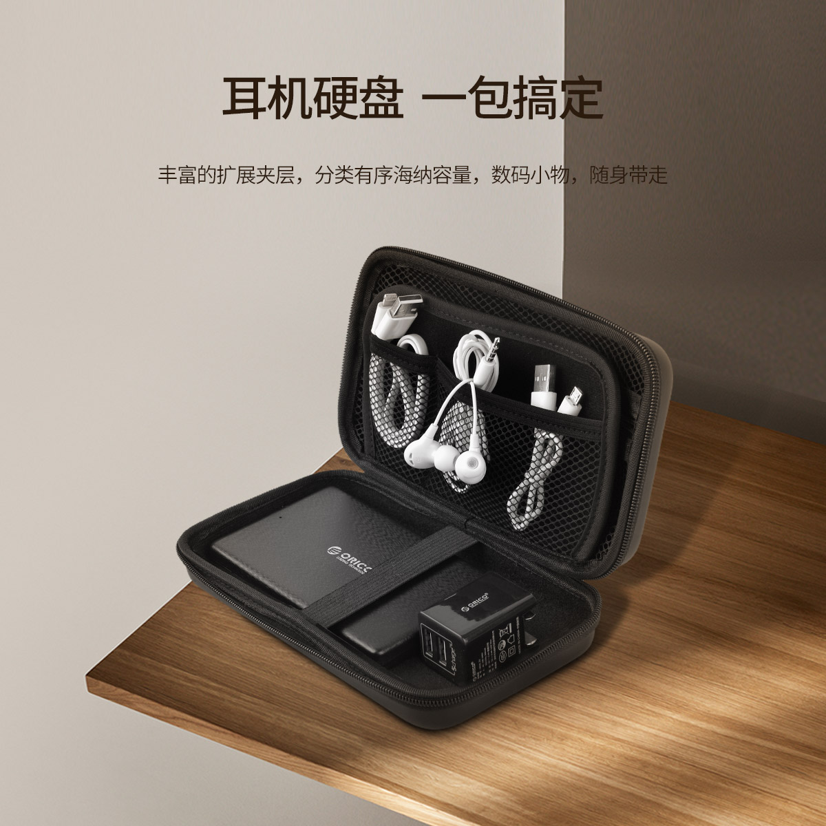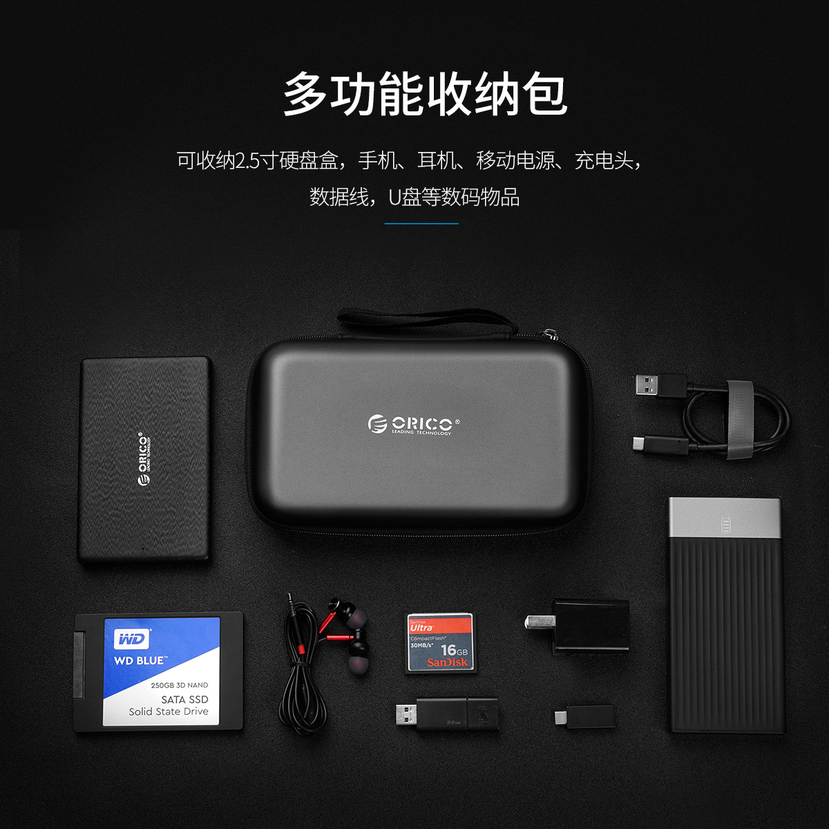 多功能2.5英寸硬盤收納包防水,抗震,豐富的擴(kuò)展夾層,耳機(jī)硬盤,一包搞定