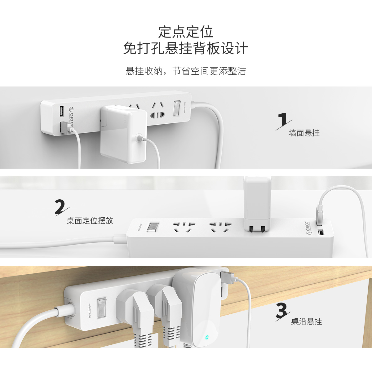 懸掛式新國(guó)標(biāo)3AC口2usb口智能家居排插