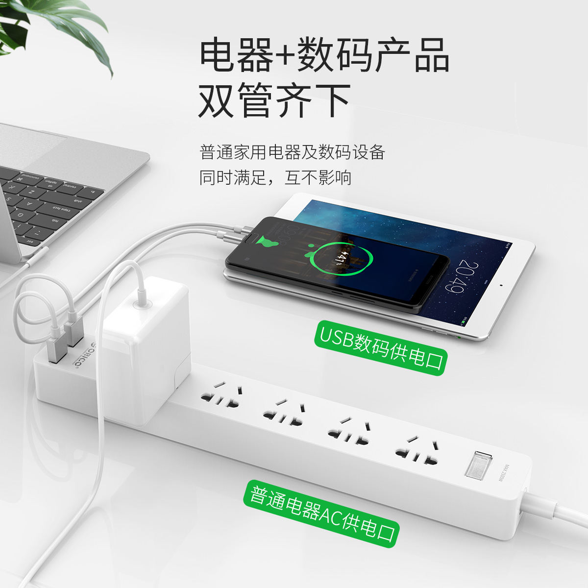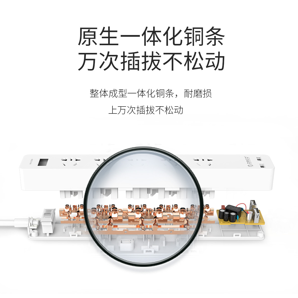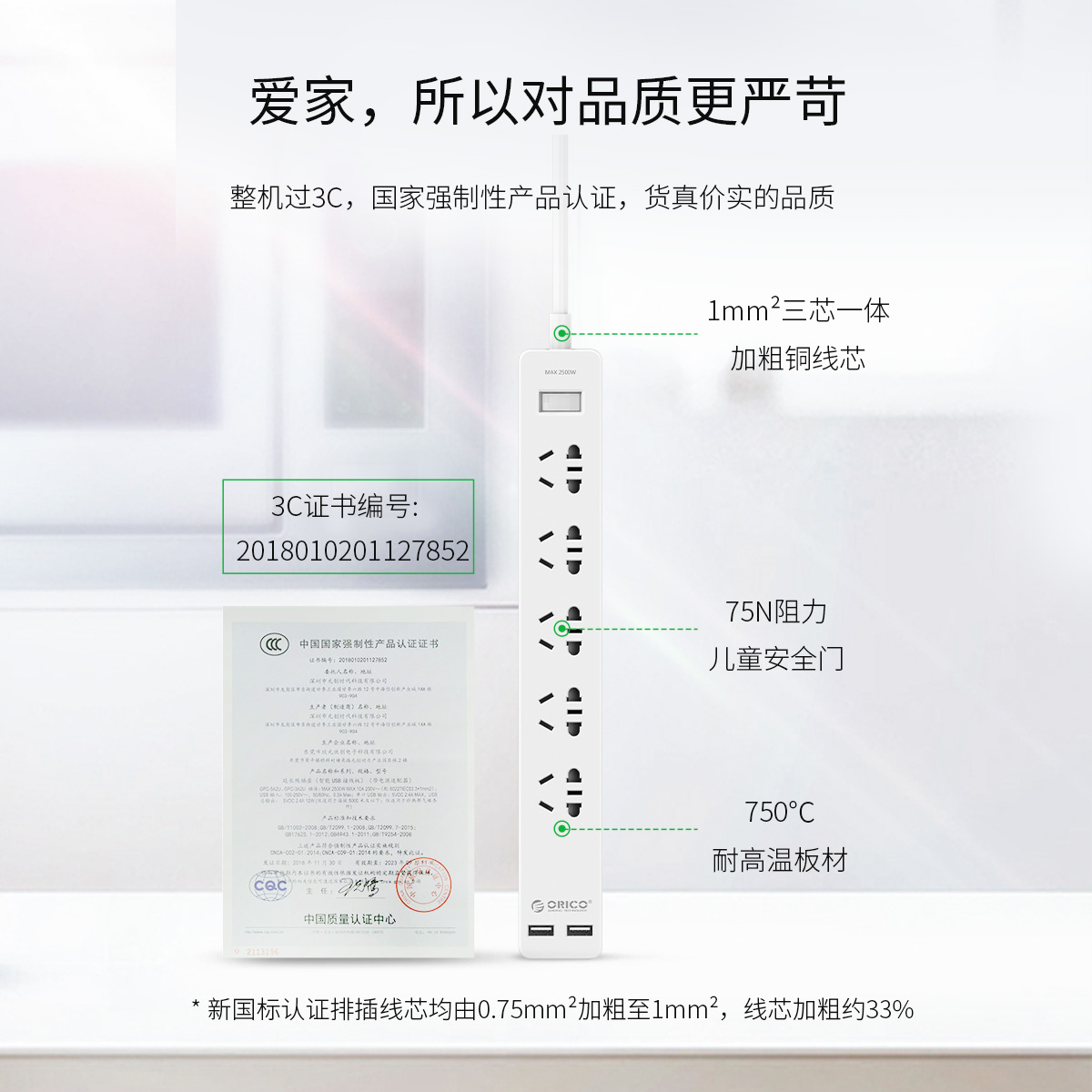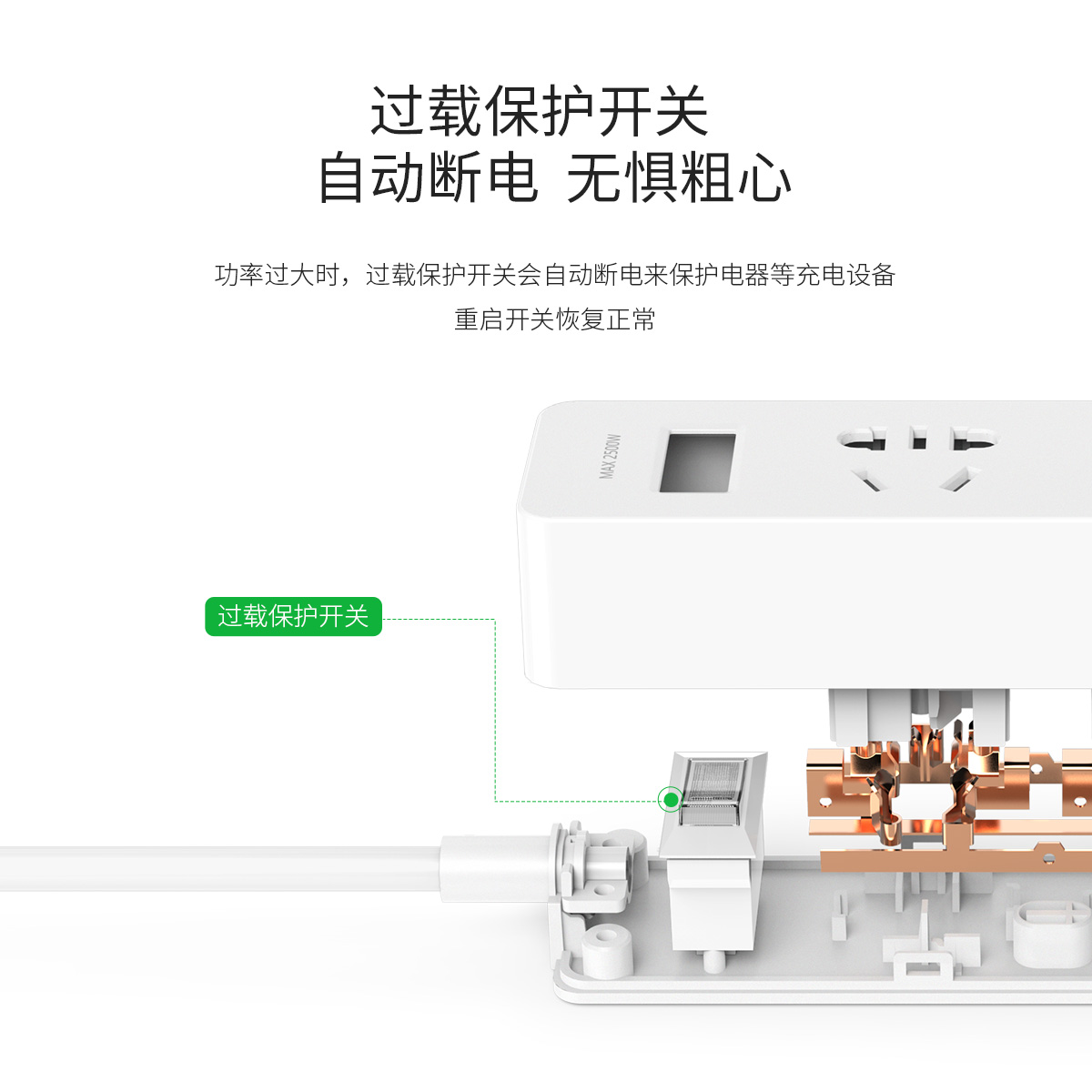 新國標AC口*5, USB口*1,QC3.0*1, 1.5米三芯一體式電源線
