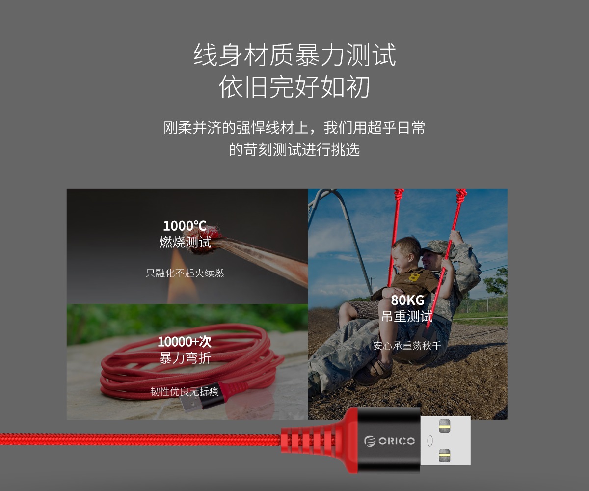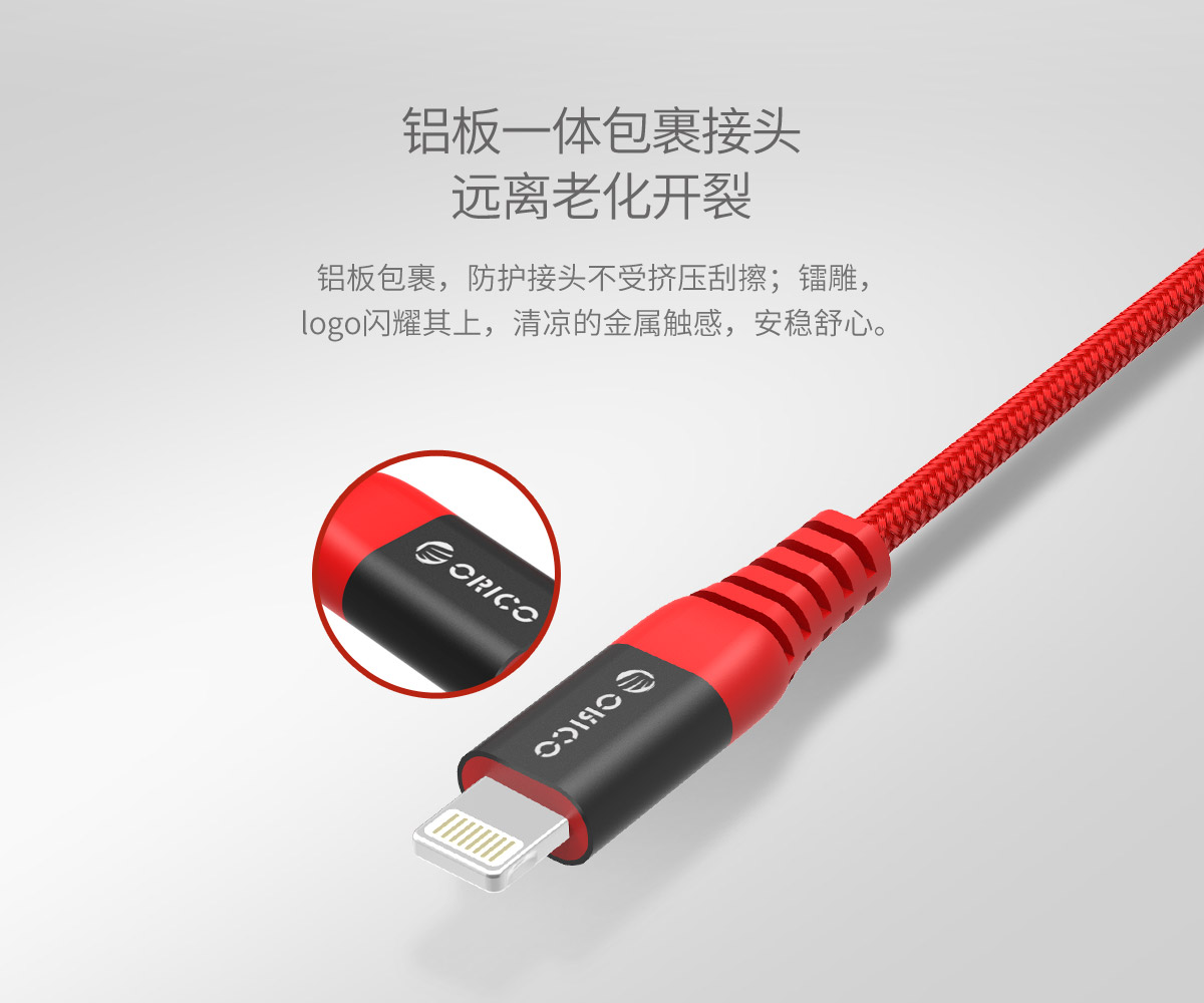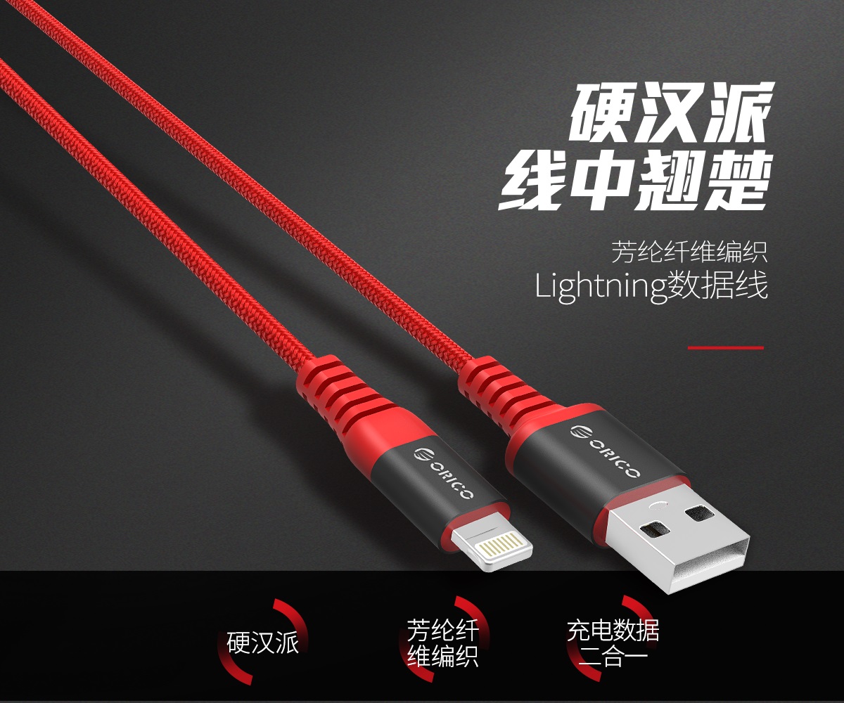 紅色芳綸纖維編織,2.4A大電流,鍍鎳不銹鋼插頭,粗鍍錫高純度銅芯