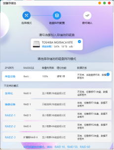 點擊“創建存儲池”,選擇硬盤和磁盤陣列模式,確認信息無誤后輸入管理員密碼,即可完成存儲池的創建。
